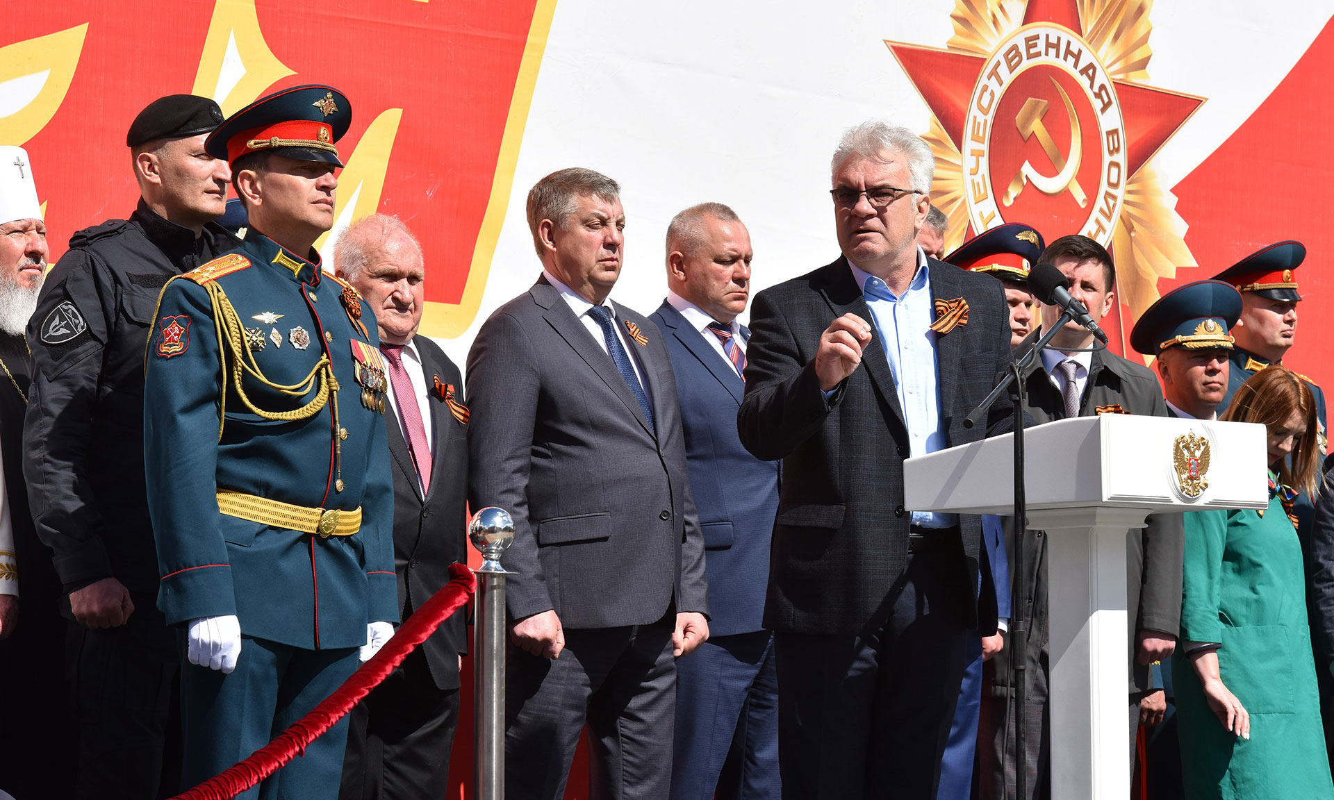 — Уважаемый Александр Васильевич, дорогие ветераны, жители и гости города Брянска! Поздравляю вас с самым главным и святым праздником для каждой семьи нашей большой страны — с Днем Победы над фашистской Германией! 77 лет назад наши деды и прадеды подарили земле мир. Как потомки ветеранов мы заверяем вас, что никому не позволим переписать страницы святой истории нашей страны! Святые традиции наших предков, которые встретили День Победы в Берлине, будут продолжены!