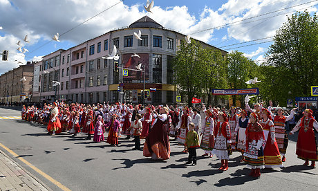 Детские фольклорные коллективы «Калинушка», «Зарянка», «Лукошко» исполнили песню «Мы — дети своей земли!». В исполнении городского Академического хора, хора ветеранов Дворца культуры БМЗ, детских народных коллективов, ансамбля народной музыки «Ватага» звучит песня «День Победы!»