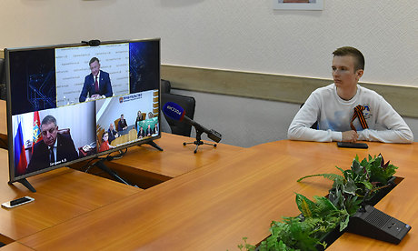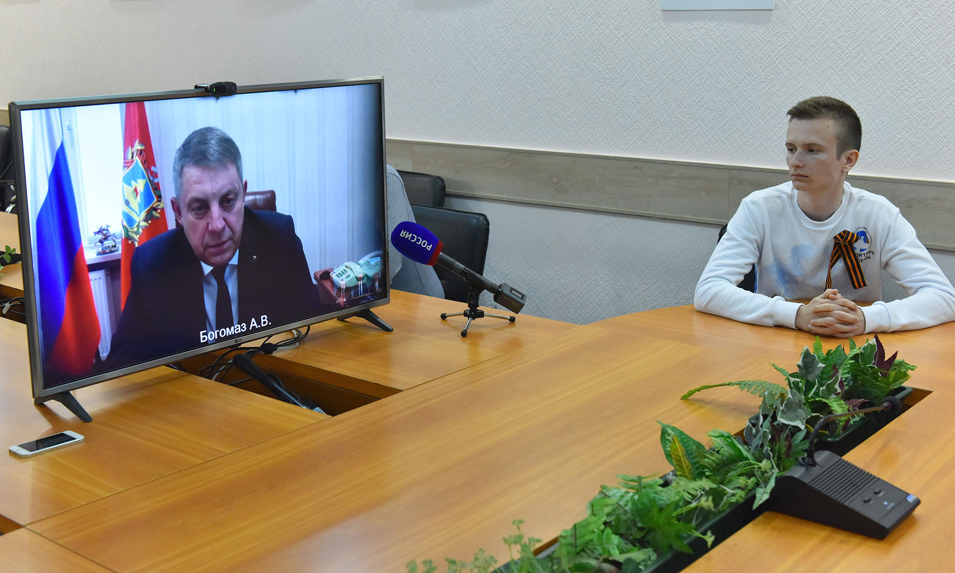 18 мая Губернатор Брянской области Александр Богомаз принял участие в телемосте «Курск-Брянск-Кёнигсберг», посвященном передаче копии боевого пионерского знамени и приуроченного к 100-летию со дня образования пионерской организации.