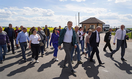 Министры сельского хозяйства Донецкой и Луганской Народных Республик Артем Крамаренко, Юрий Пронько и специалисты аграрной отрасли Донбасса посетили знаменитое хозяйство, которым уже более 30 лет успешно руководит Герой Социалистического Труда, доверенное лицо Президента России Владимира Путина Георгий Константинович Лобус.