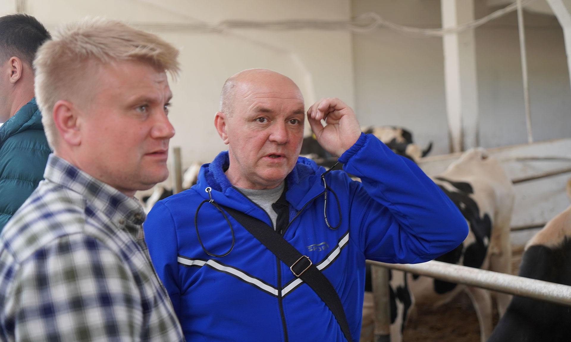 Современный доильный зал — гордость предприятия. Одновременно может работать 58 доильных мест. Системы накопления молока, навозоудаления — автоматические, установлено современное оборудование. Юрий Пронько подсчитал, что если сейчас на ферме 900 коров и работает всего три сотрудницы, то при такой организации труда, как на «Красном Октябре», на одну приходится 300 коров, тогда как в советское время — 29.