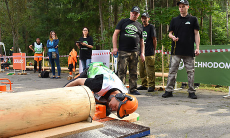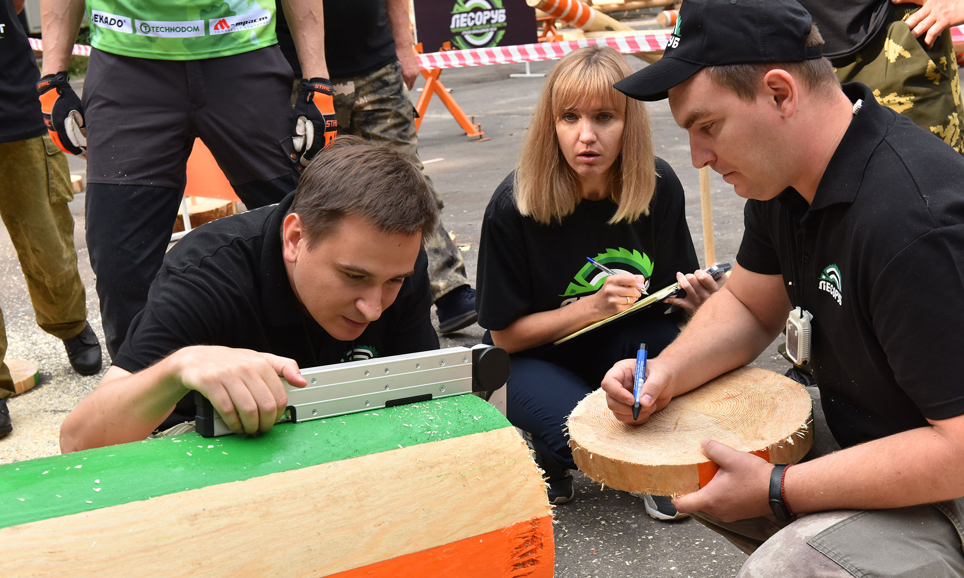 Эти чемпионаты создавались на простой основе, а сейчас это уже слаженный коллектив, крутая подготовка, серьёзный профессионализм. Раскряжевка комбинированным резом требует серьезной подготовки глазомера и умения.