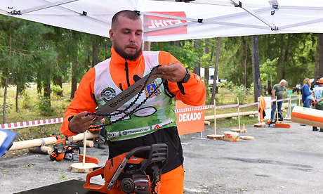 26 августа на территории мемориального комплекса «Лесникам-партизанам» учебно-опытного лесничества стартовал VIII открытый чемпионат Брянской области среди вальщиков леса с бензомоторными пилами «Лесоруб-2022». В течение двух дней спортсмены будут состязаться в шести упражнениях: валка дерева, точная раскряжёвка, раскряжёвка комбинированным резом, обрезка сучьев, замена цепи и командная эстафета.