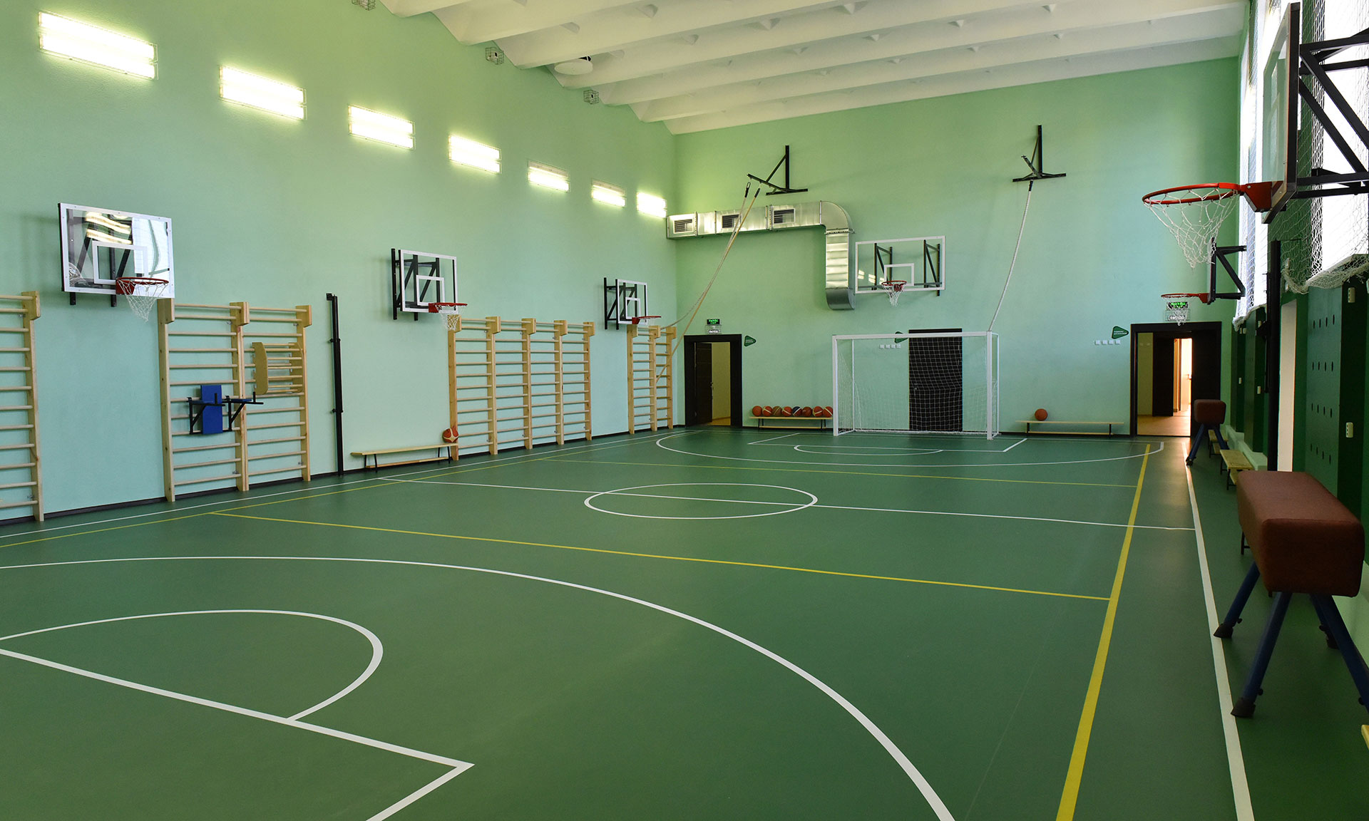 В музыкально-спортивном зале для дошкольников будут проводиться занятия музыкой и физкультурой, а также праздники и развлечения. В зале находится современное оборудование, микшерная установка, микрофоны. Это позволит проводить праздники не только дошкольникам, но и в школе. Спортивный зал школы оборудован всем необходимым для занятий спортом. Здесь можно проводить соревнования и товарищеские матчи.