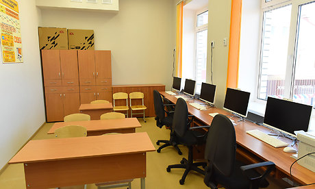 В школе созданы все условия для детей-инвалидов. Школа оборудована двумя подъемниками, на всех этажах и спортзале есть туалеты для инвалидов.