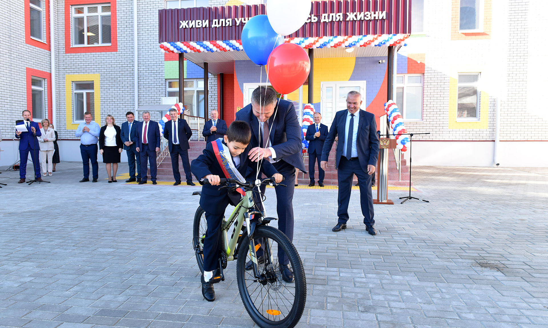 У первоклассника Алексея Дюкова двойной праздник — 1 сентября он празднует и свой день рождения. В честь такого события Губернатор вручил имениннику велосипед.