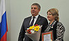 — Хочу отметить, что в последние годы в сентябре у нас появились профессиональные праздники почти для каждого уровня сферы образования: есть День работника дошкольного образования, День работника среднего профессионального образования, есть День учителя. Мне кажется, что где бы сегодня ни работали наши педагоги: в детском саду, в техникуме или колледже — всех нас объединяет одно слово — учитель. Учителя — это те люди, которые учат наших ребят не только читать и писать. Это те люди, которые прививают любовь к Родине, воспитывают патриотические чувства к нашей стране. И это очень важно! Накануне Дня учителя я хочу поздравить всех с праздником: и тех, кто находится в этом зале, и тех, кто находится на рабочих местах — в образовательных организациях! Здоровья, удачи, благополучия, новых профессиональных успехов! Хочу отметить, что в Брянской области сложилась очень добрая традиция — на торжественном мероприятии в честь Дня учителя чествовать наших молодых педагогов, которые стали победителями конкурса «Педагогический дебют». В этом году конкурс проводился в 10-й раз. Более 150 человек молодых педагогов, стаж которых не достигает еще 3-х лет, принимают участие в конкурсе. Результаты конкурса — их выступления, их уроки, их презентации — говорят о том, что это хорошая смена нашим ветеранам!