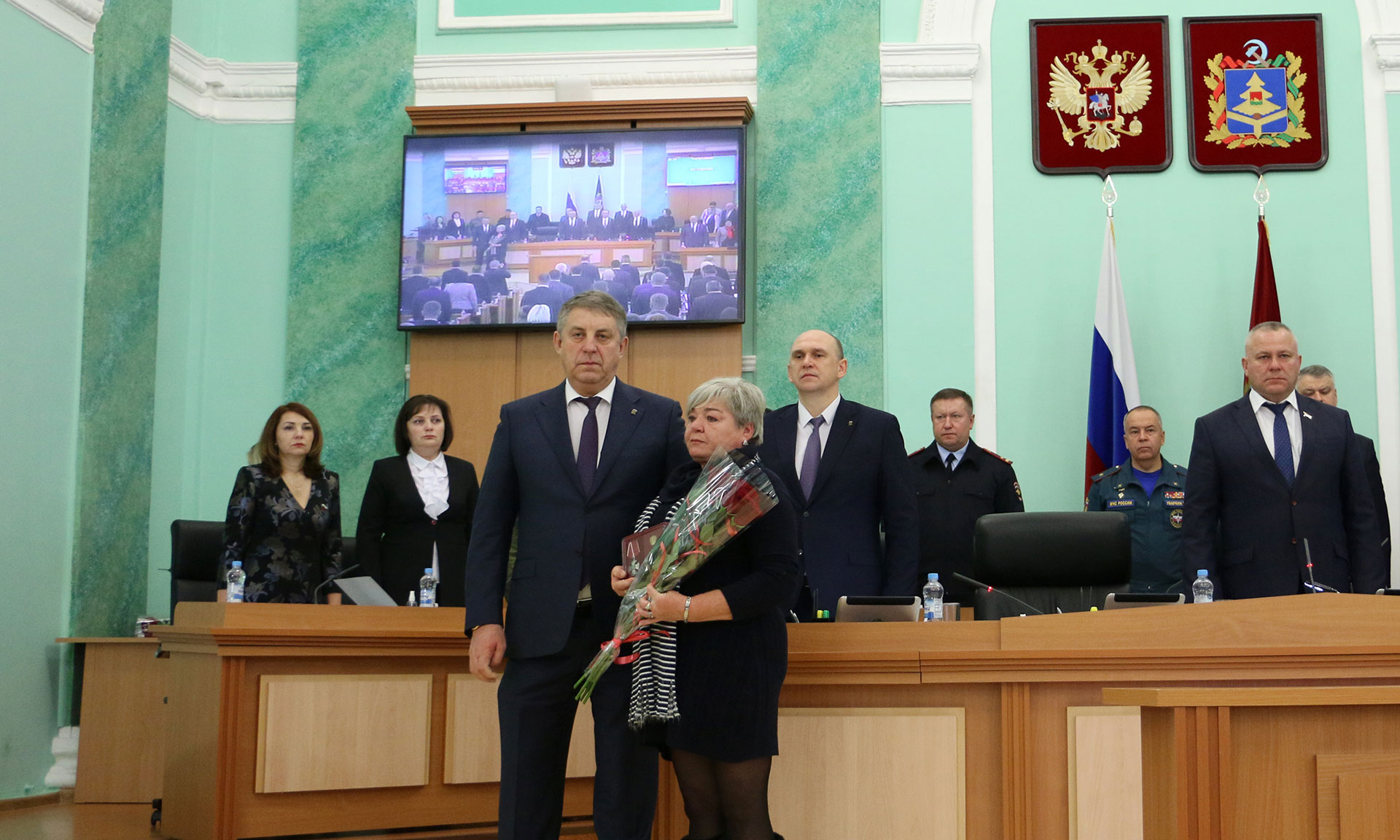 Церемония вручения государственных наград за героизм, проявленный в ходе проведения специальной военной операции по защите мирного населения Донбасса, состоялась перед началом заседания Брянской областной Думы.