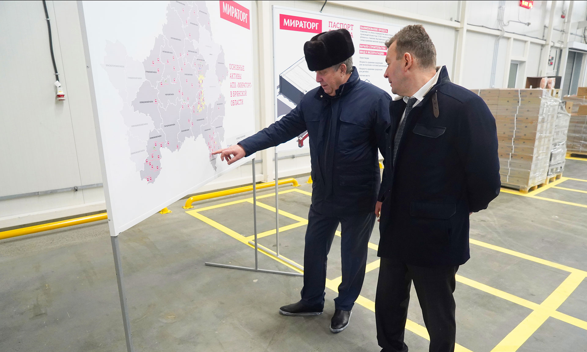 Участники мероприятия побывали на площадке компании «Мираторг» в Выгоничском районе, где работают два крупнейших завода по переработке мяса КРС и мяса птицы. Там же построен логистический центр, где одновременно хранится более тысячи тонн различных видов мясной продукции, и который позволяет вести загрузку в контейнеры и в дальнейшем отправлять на экспорт. Агропромышленный холдинг «Мираторг» инвестировал 2,3 млрд рублей в проект по строительству склада и дистрибуторского центра для заморозки, хранения и отгрузки мясной продукции. Благодаря реализации этого проекта, уже в конце 2022 года на железнодорожном терминале станции «Брянск-Льговский» будет сформирован первый специализированный ж\д состав с продукцией компании, который направится потребителям на Дальний Восток и экспортным партнерам в Азию.