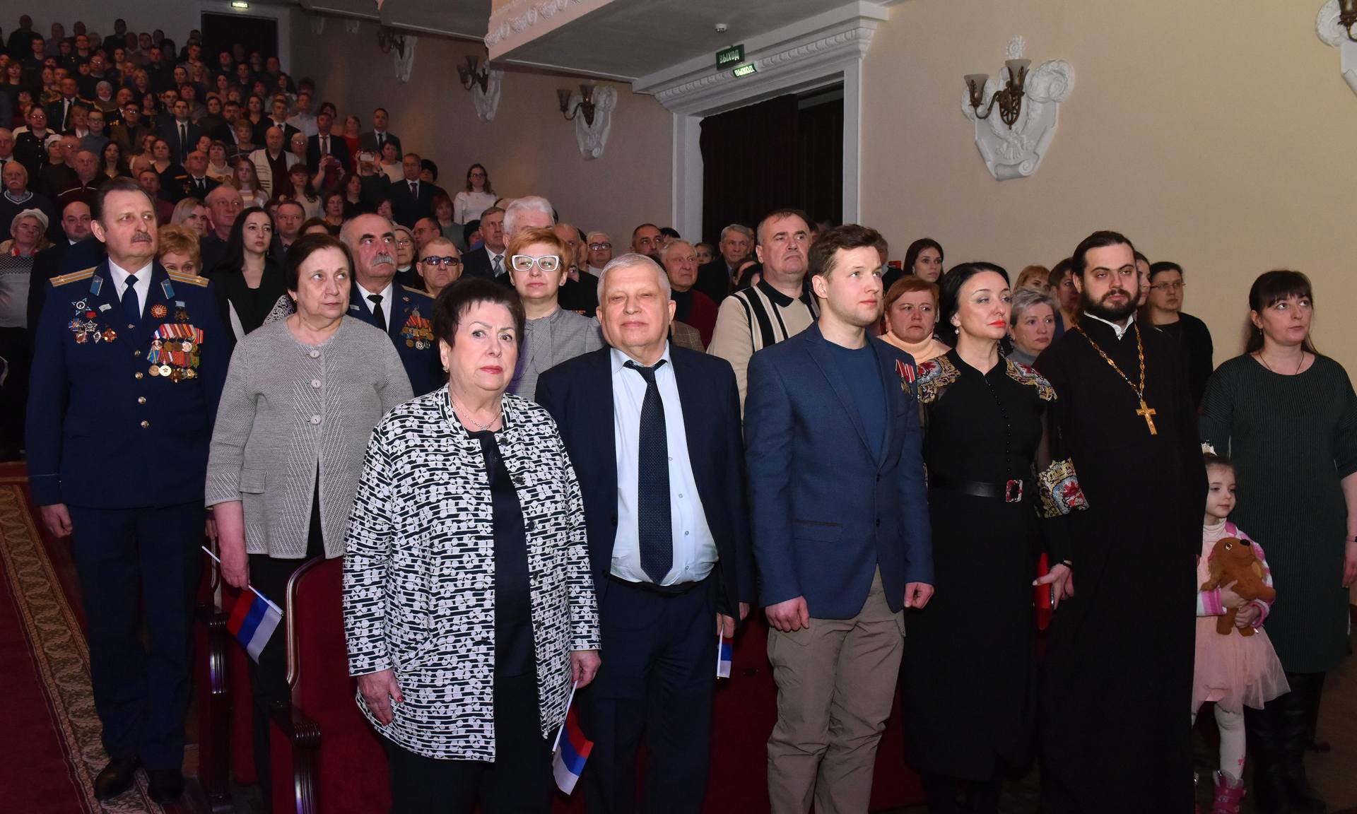 — Дорогие брянцы и гости, мы сегодня в этом прекрасном зале нашего любимого города собрались в преддверии прекрасного смелого праздника — 23 февраля, Дня защитника Отечества. Почему смелого? Потому что именно этот день показывает нам и любовь к Родине, к нашим военнослужащим. Которых мы, матери, жены, любим. И готовы их оберегать и молиться за них.