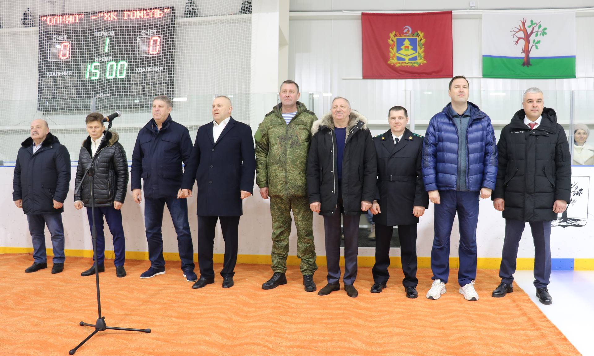 — Добрый день участники соревнований, дорогие наши гости-белорусы, уважаемые земляки. Я от всей души поздравляю вас с нашим общим праздником — Днем защитника Отечества. Сегодня на лёд вышли наши дети, будущее наших стран. И если говорить о празднике — Дне защитника Отечества, то он символизирует тех, кто служил, кто сегодня служит, или кто защищал и сегодня защищает нашу страну Россию и Республику Беларусь. Очень символично сегодняшнее проведение товарищеского матча между командой г. Гомеля, командой олимпийского резерва и чемпионами Брянской области прошлого года, командой г. Стародуба. Сегодня здесь, на площадке, встретятся наши дети, будущие защитники Республики Беларусь и будущие защитники нашей страны. У нас общее прошлое, общая история, общие исторические ратные подвиги наших предков, и у нас сегодня общее настоящее и общее будущее.