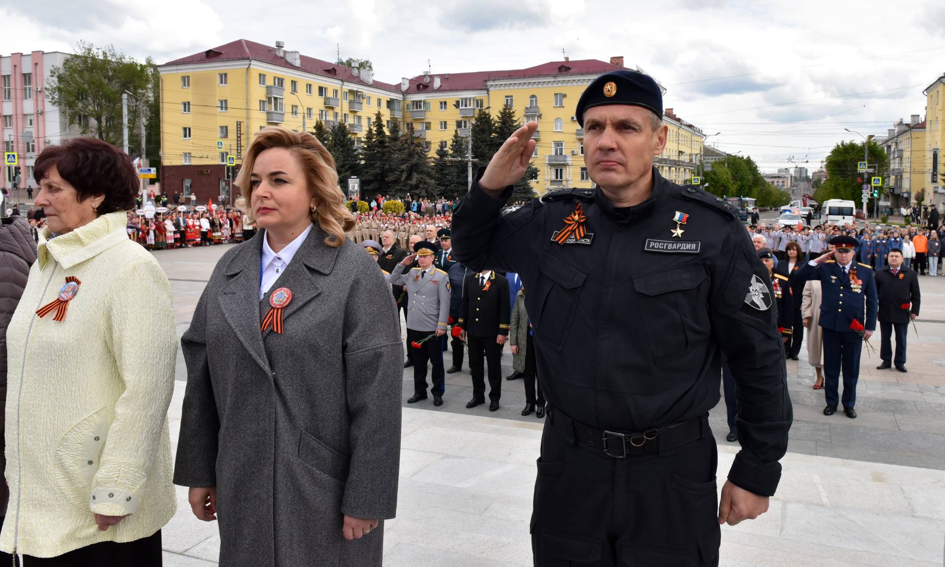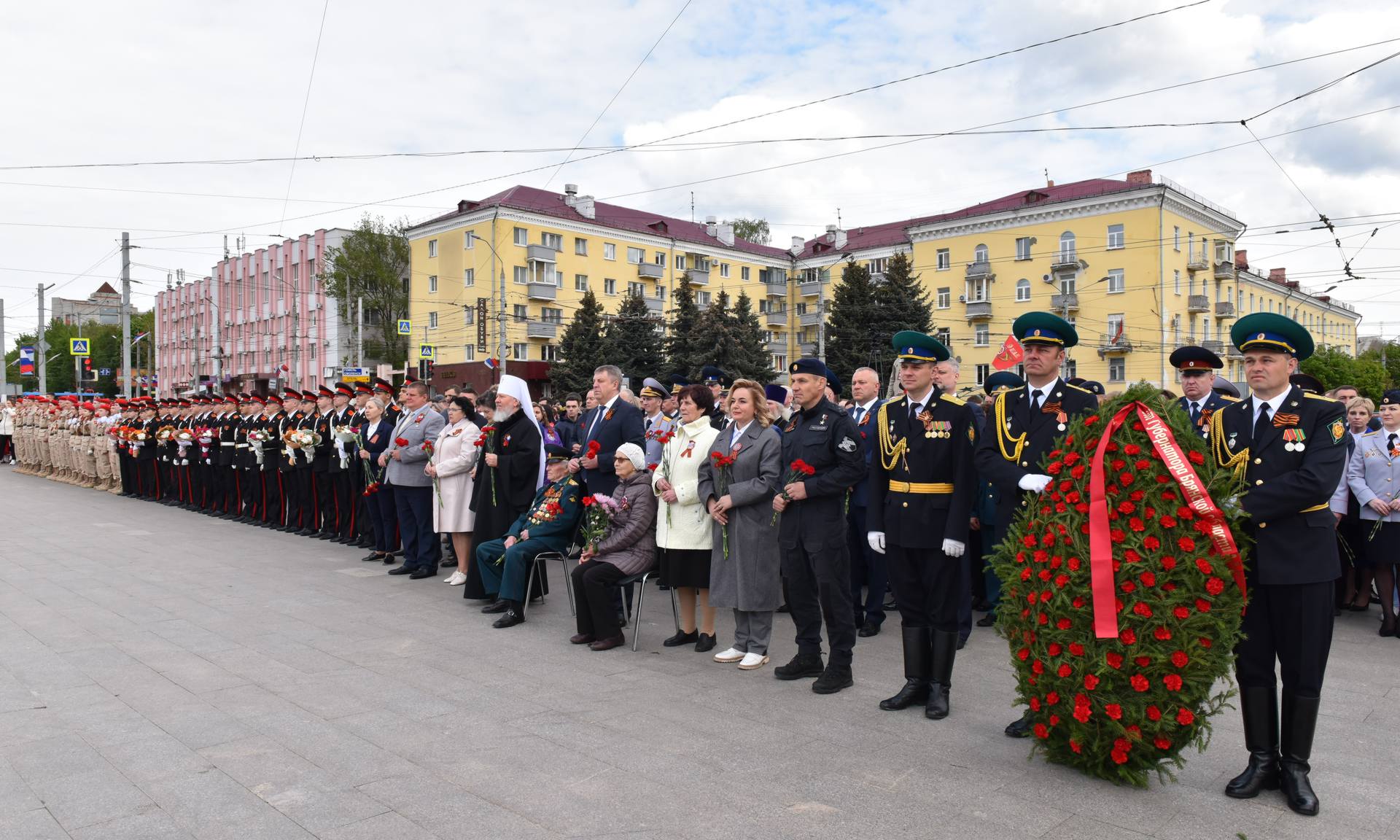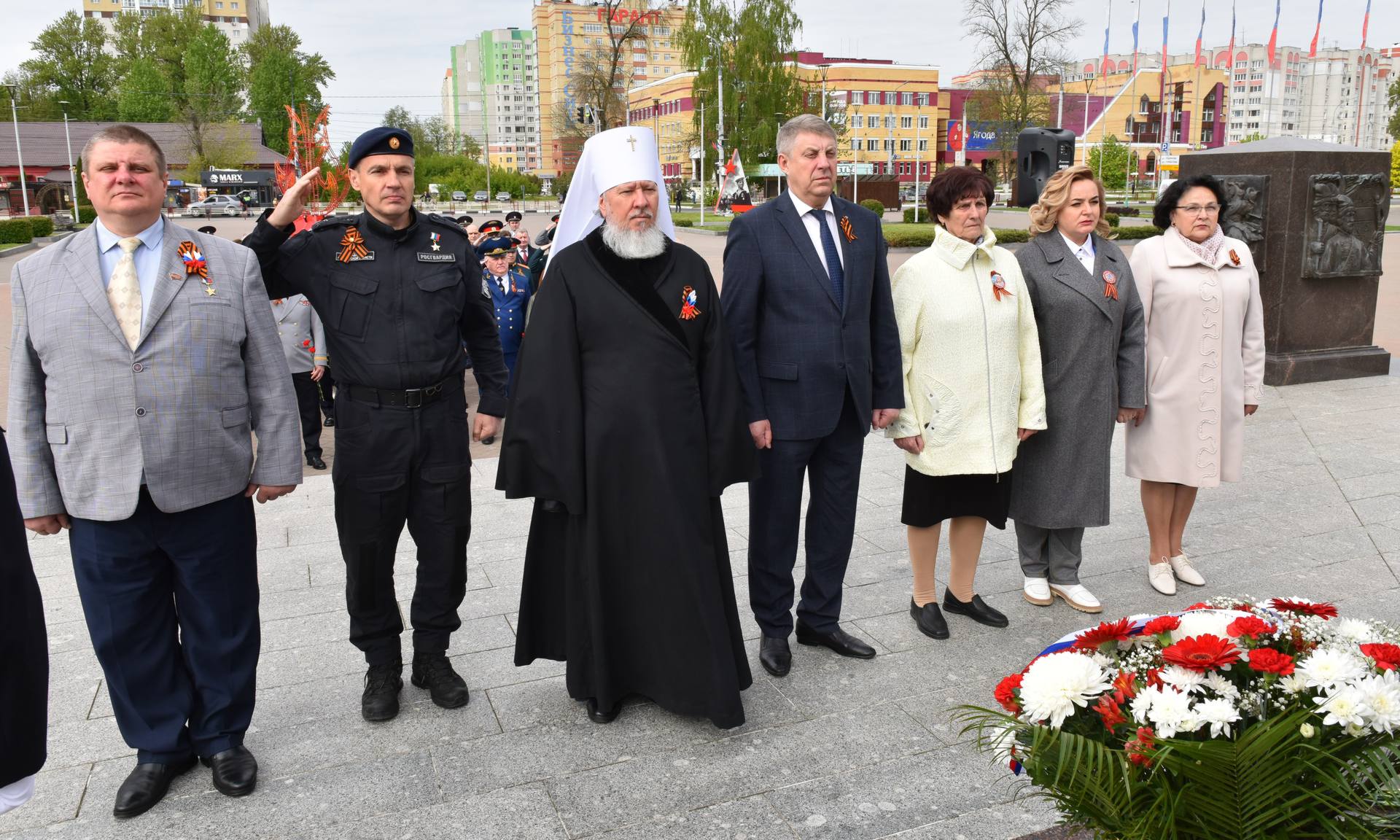 В официальной церемонии возложения приняли участие Губернатор Брянской области Александр Богомаз, митрополит Брянский и Севский Александр, ветеран Великой Отечественной войны 1941 — 1945 годов Николай Степанович Редикульцев, бывшая малолетняя узница фашистского концлагеря Роза Дмитриевна Трошина, Герои Российской Федерации Андрей Анатольевич Фроленков и Александр Викторович Постоялко, матери погибших защитников Отечества: председатель постоянного комитета Брянской областной Думы по образованию, науке, культуре и СМИ Людмила Федоровна Журавлева, член Общественной палаты Российской Федерации, член Брянского регионального отделения Общероссийской общественной организации семей погибших защитников Отечества Лидия Филипповна Ермакова, председатель Брянского регионального отделения «Комитет семей воинов Отечества» Марина Николаевна Седнева, Галина Георгиевна Василева;