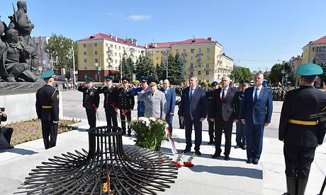Участники торжественного митинга почтили минутой молчания память воинов-пограничников, погибших при исполнении служебных обязанностей по защите и охране государственной границы.