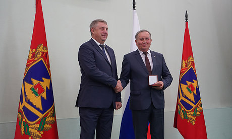 В рамках заседания за поддержку воинских подразделений, семей военнослужащих — участников специальной военной операции и нуждающихся в помощи состоялась церемония вручения Благодарности Председателя партии «Единая Россия» Дмитрия Медведева, а также памятных медалей «20 лет Единая Россия». Губернатор Александр Богомаз вручил заслуженные награды и поблагодарил награжденных за профессионализм.