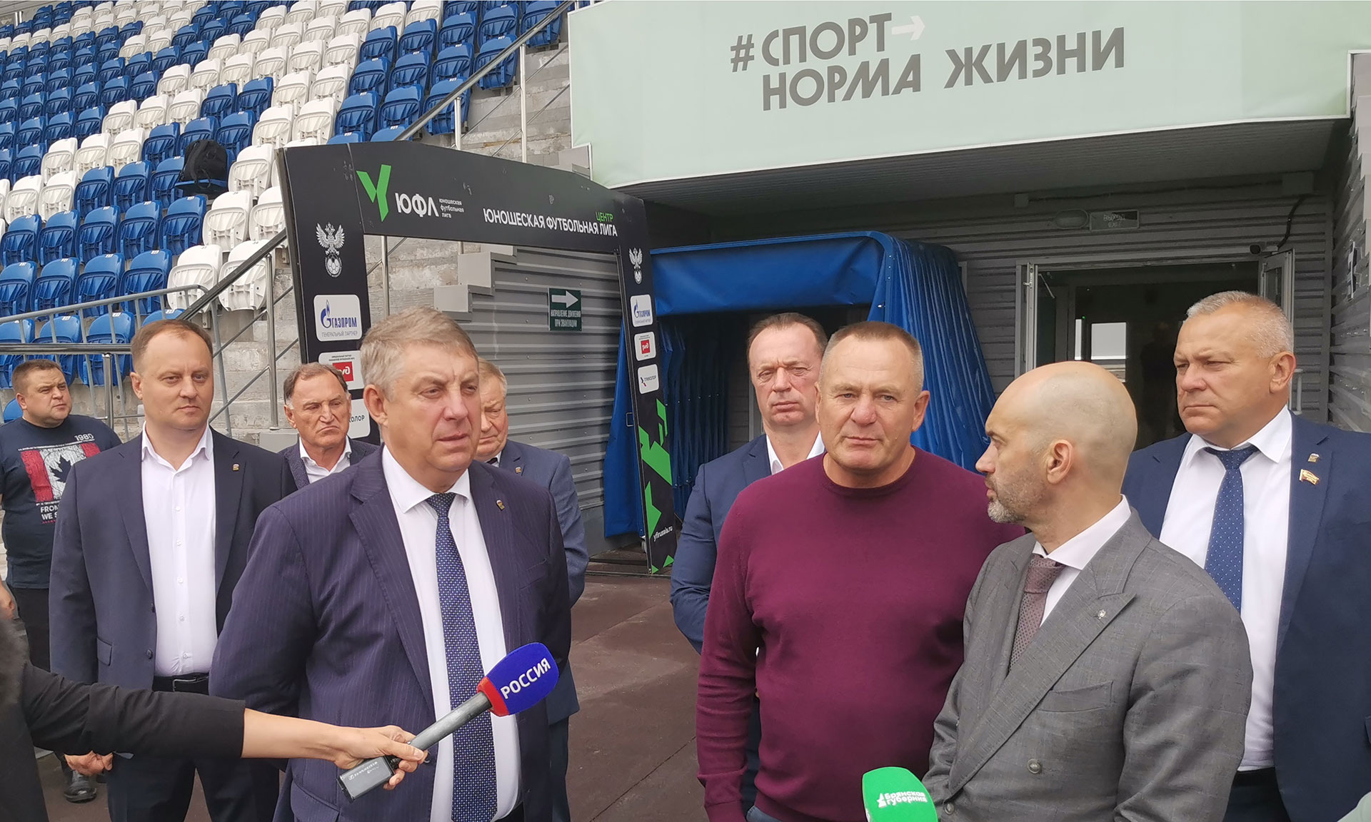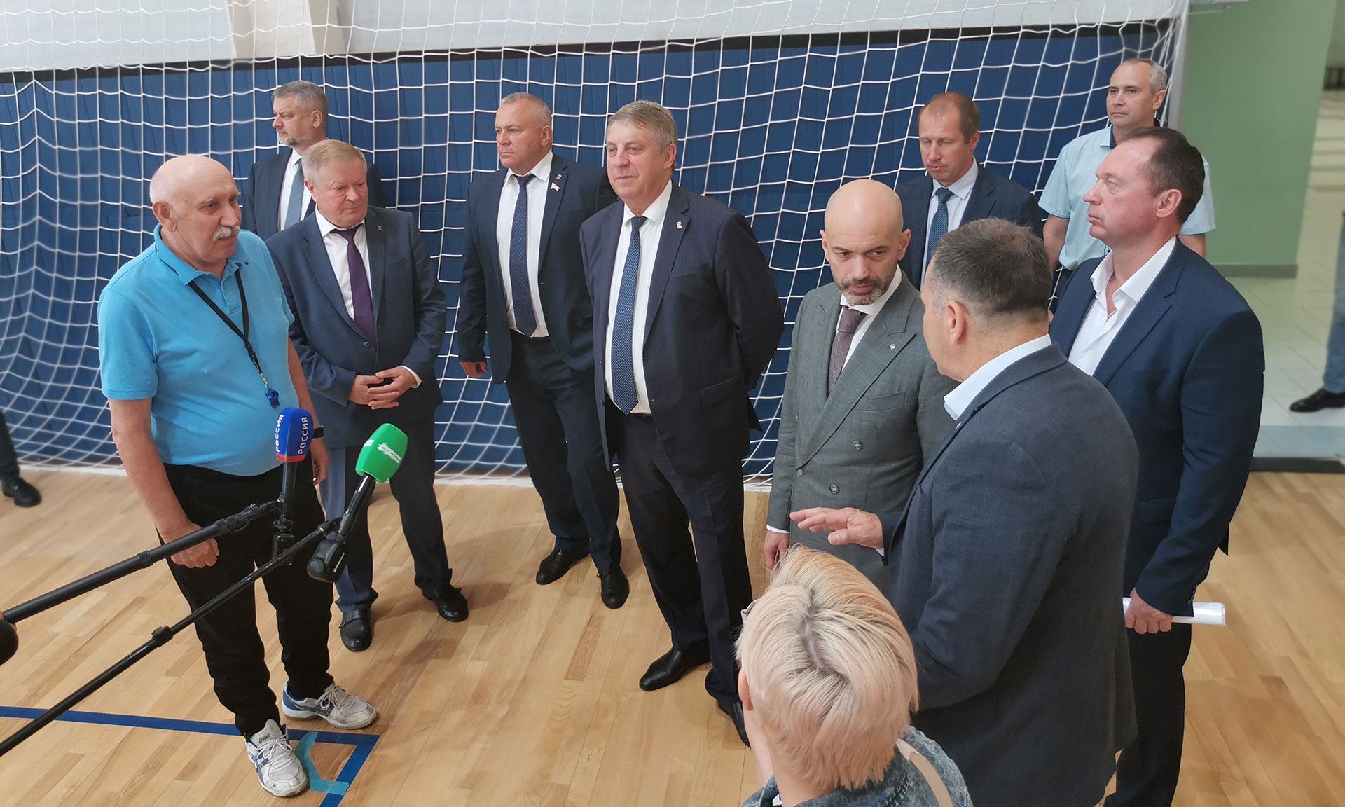 11 августа в ходе рабочей поездки в Брянскую область первый заместитель Министра спорта Российской Федерации Азат Кадыров посетил вместе с Губернатором Александром Богомазом ряд спортивных объектов в Брянске.