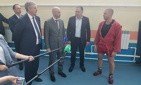 Первый заместитель Министра спорта Российской Федерации Азат Кадыров видел Дворец единоборств еще во время строительства, и сегодня смог профессиональным взглядом оценить, как объект эксплуатируется. Дворец единоборств — гордость нашей области, прекрасное спортивное сооружение, которое позволяет заниматься спортом в современных условиях не только профессиональным спортсменам, но и всем любителям спорта, здорового образа жизни, детям, молодежи и взрослым. Азат Кадыров и Губернатор Александр Богомаз пообщались с юными спортсменами, тренерами, посмотрели, как проходят тренировки.