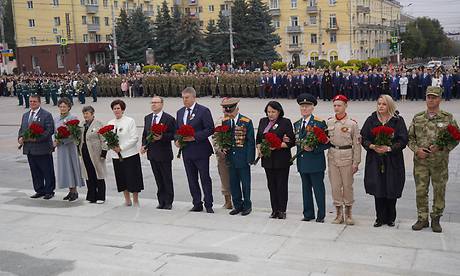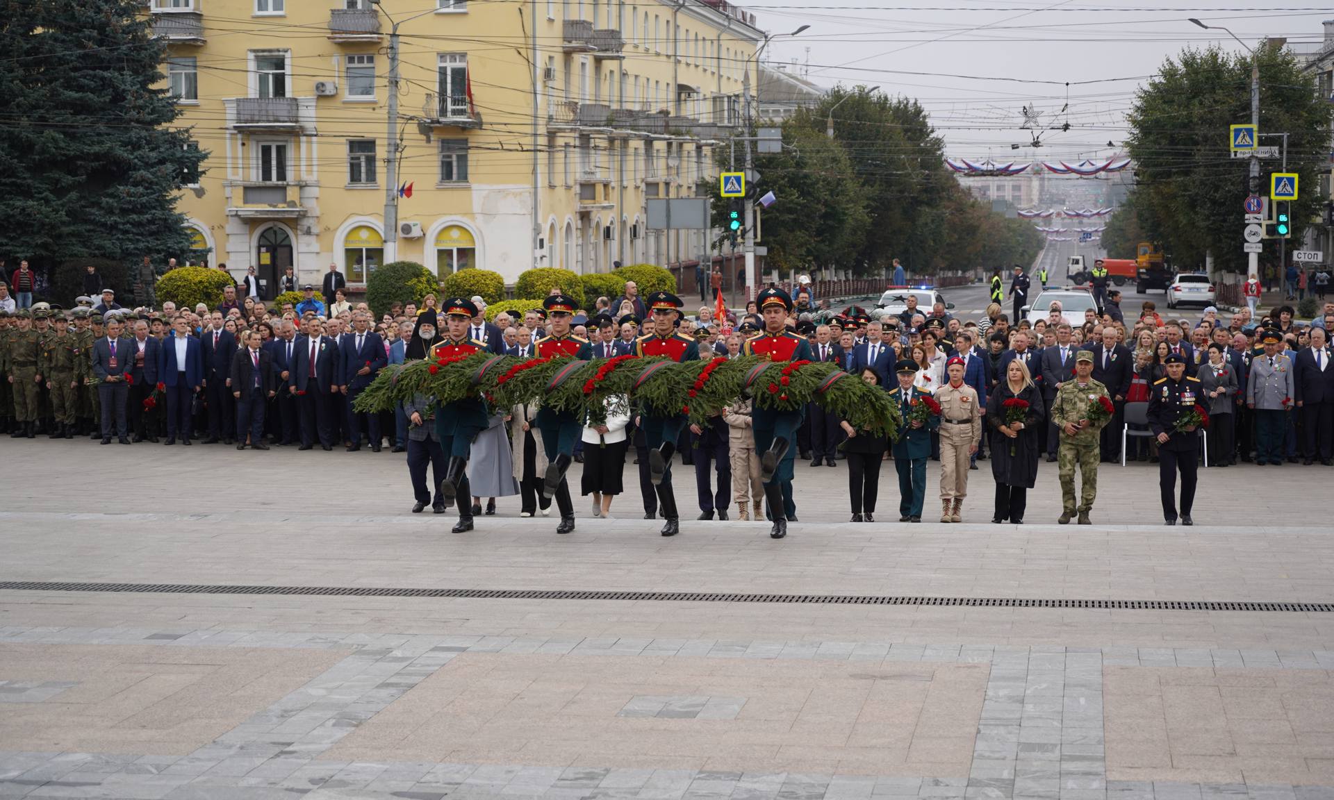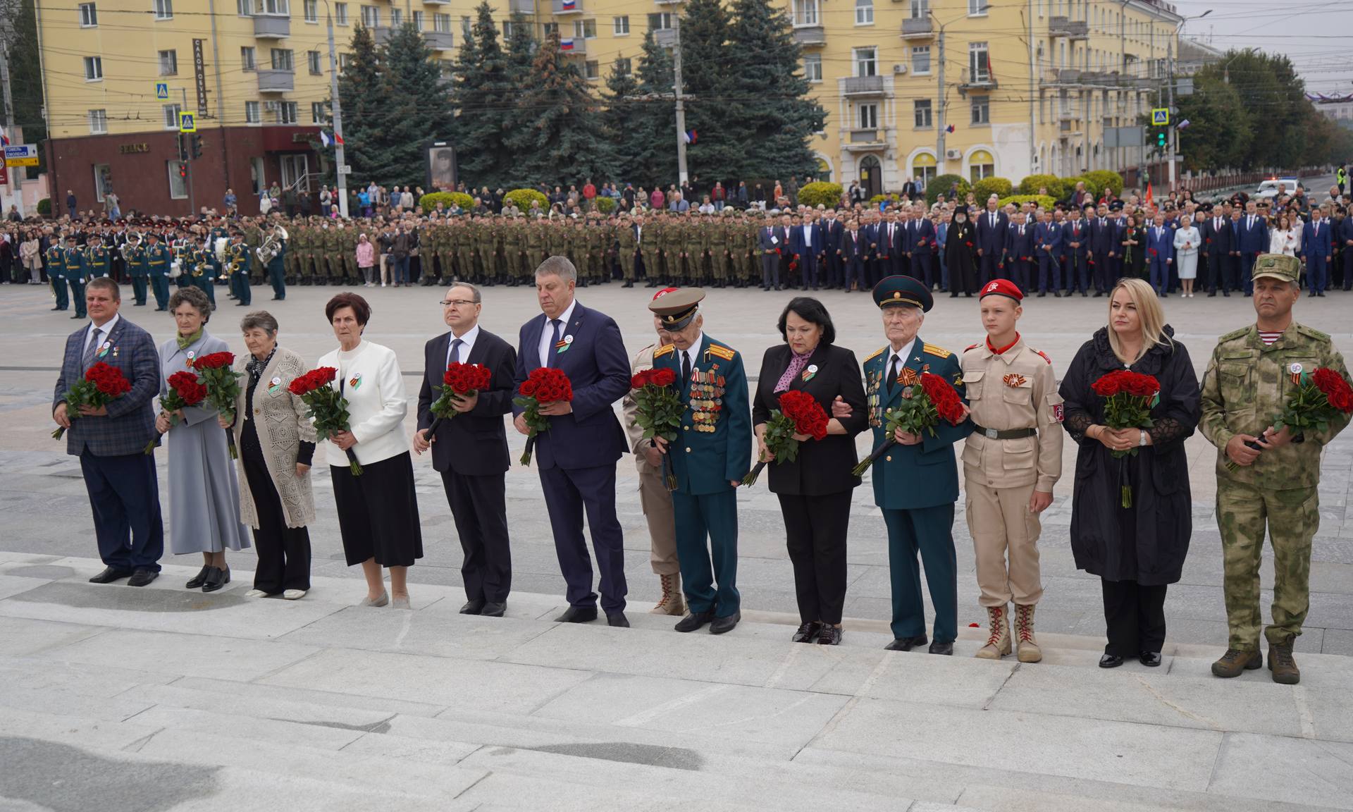 В знак памяти и благодарности воинам и партизанам, победителям в Великой Отечественной войне 1941–1945 годов гирлянду и цветы к Вечному огню памяти народной возложили заместитель полномочного представителя Президента Российской Федерации в Центральном федеральном округе Сергей Нештенко, Губернатор Брянской области Александр Богомаз, Командующий Центральным округом Федеральной службы войск национальной гвардии, генерал полковник Александр Попов, участник Великой Отечественной войны 1941–1945 годов, почетный гражданин Брянска Борис Васильевич Шапошников, Герой Российской Федерации Александр Постоялко, Герой Российской Федерации Андрей Фроленков, мать Героя Российской Федерации Галина Георгиевна Василева, мать Героя Российской Федерации Лидия Филипповна Ермакова, Мать Героя Российской Федерации Елена Федосовна Ермакова, мать погибшего офицера в Сирийско-Арабской Республике Людмила Федоровна Журавлева, председатель Брянской областной Думы Валентин Суббот, главный федеральный инспектор по Брянской области Андрей Дьячук, сенаторы Федерального Собрания Российской Федерации Галина Солодун и Вадим Деньгин, депутаты Государственной Думы Федерального Собрания Российской Федерации Артем Туров, Николай Алексеенко, Николай Щеглов, Николай Валуев, председатель Брянского областного суда Александр Курганов, председатель Арбитражного суда Брянской области Евгений Егоров, прокурор Брянской области Александр Войтович, начальник управления ФСБ России по Брянской области Сергей Воронин, начальник управления МВД России по Брянской области Владислав Толкунов, руководитель следственного управления Следственного комитета Российской Федерации по Брянской области Максим Лукичев, начальник управления Федеральной службы войск национальной гвардии Российской Федерации по Брянской области Иван Ванчугов, начальник главного управления МЧС России по Брянской области Вадим Уваркин, временно исполняющий обязанности начальника пограничного управления ФСБ России по Брянской области Амир Амиров, начальник Центра специальной связи и информации Федеральной службы охраны Российской Федерации в Брянской области Олег Бельский, руководитель управления Федеральной службы судебных приставов по Брянской области — главный судебный пристав Брянской области Елена Бывшева, начальник управления ФСИН России по Брянской области Сергей Герасимов, начальник Брянской таможни Сергей Санакоев, руководитель управления ФНС России по Брянской области Андрей Маркелов, военный комиссар Брянской области Ильфат Абзалов, руководители и заместители руководителя исполнительных комитетов, руководители судебных органов Брянской области, прокуратуры Брянской области, правоохранительных органов и силовых структур Брянской области, заместители Губернатора Брянской области, депутаты Брянской областной Думы, руководители города Брянска, представители Брянской епархии, руководители общественных организаций, почетные гости из Республики Беларусь, Абхазии, Луганской Народной Республики, Республики Дагестан, Орловской, Липецкой и Курской областей, руководители органов исполнительной власти Брянской области, представители политических партий и общественных объединений.