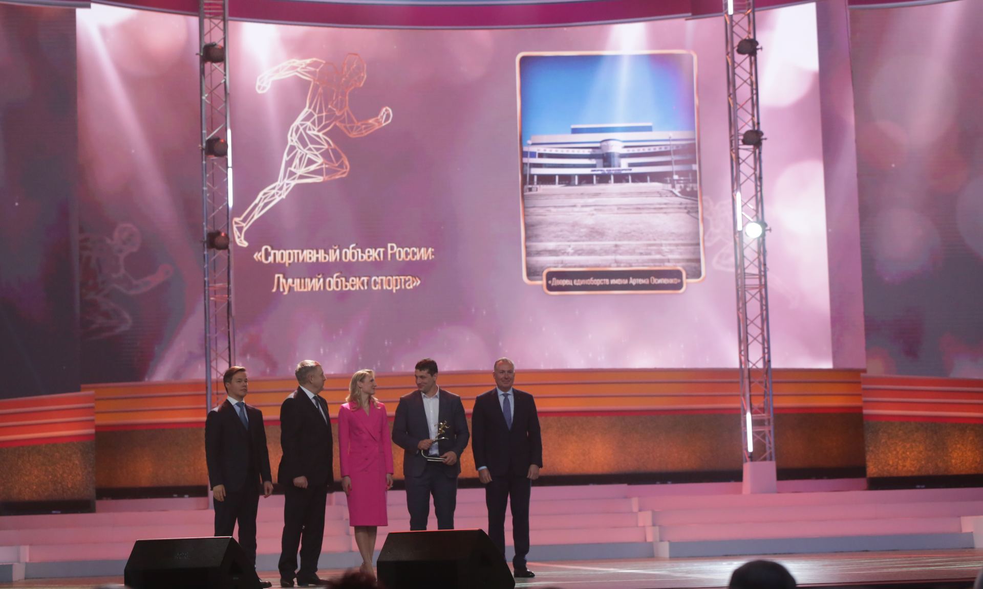 В номинации «Спортивный объект России: лучший объект спорта» победителем признан Дворец единоборств имени Артема Осипенко. Высокую награду для всей Брянской области получили Губернатор Александр Богомаз и десятикратный чемпион мира по самбо Артем Осипенко.