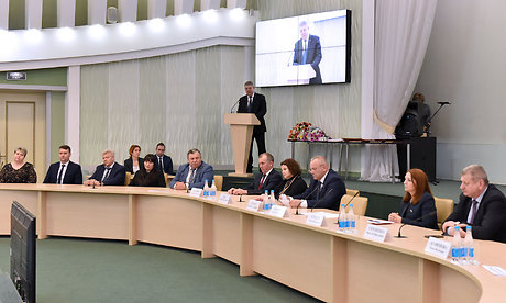 К участникам торжественного собрания обратился Губернатор Александр Богомаз: