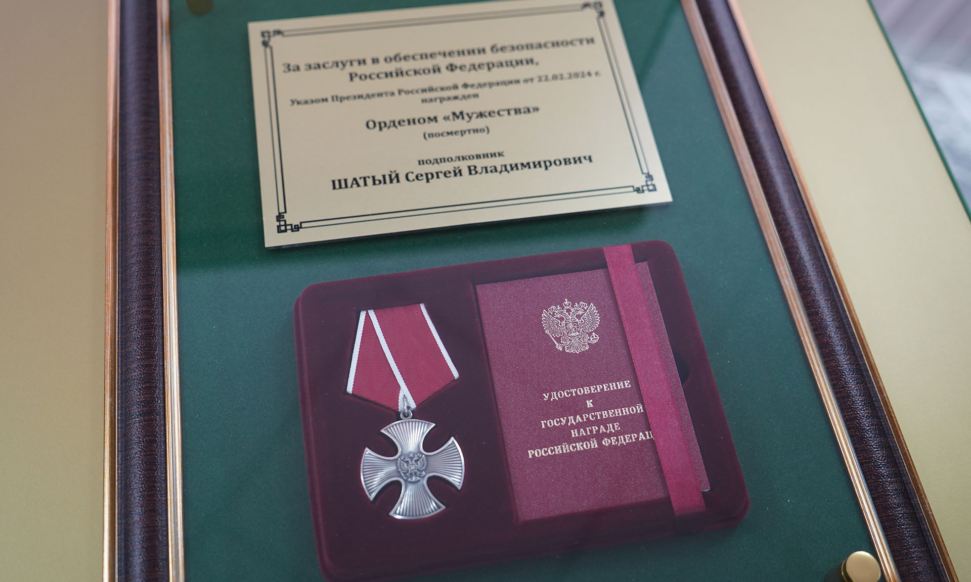 3 апреля в Пограничном управлении ФСБ России по Брянской области состоялась церемония передачи государственной награды родным подполковника Сергея Шатого, награжденного Орденом Мужества посмертно.