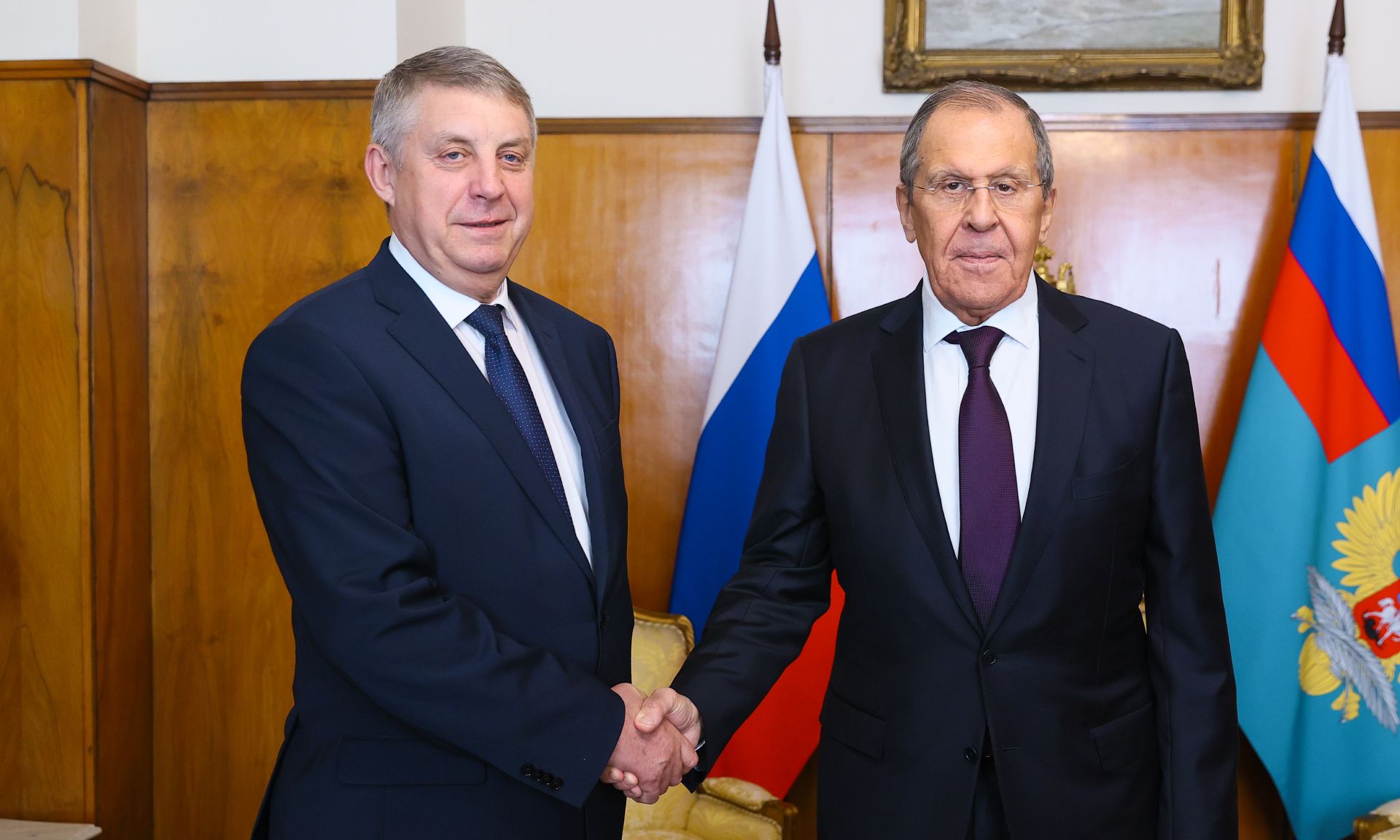 Состоялась рабочая встреча Губернатора Брянской области Александра Богомаза с Министром иностранных дел России Сергеем Лавровым. В ходе встречи обсуждалось взаимодействие МИД России и региональных органов власти, направленное на развитие международных и внешнеэкономических связей Брянской области в условиях современных геополитических реалий.