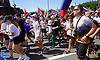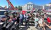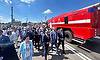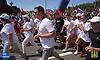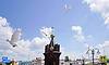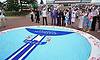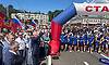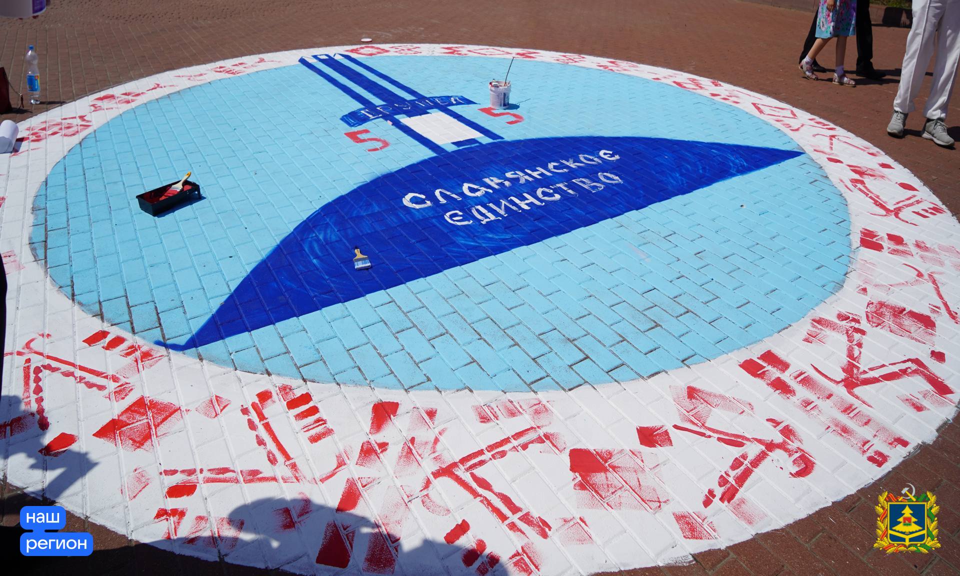 В честь юбилейного фестиваля молодые художники России и Беларуси изобразили на брусчатке Славянской площади его символ — Монумент Дружбы, у которого все начиналось.