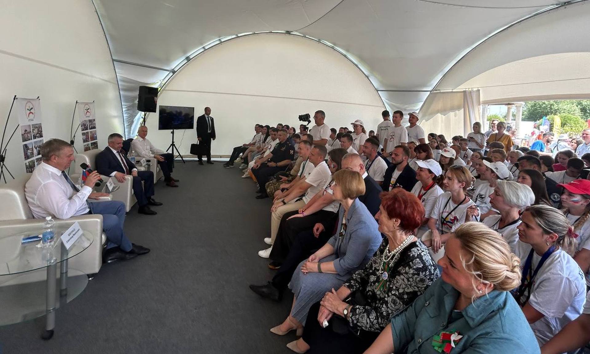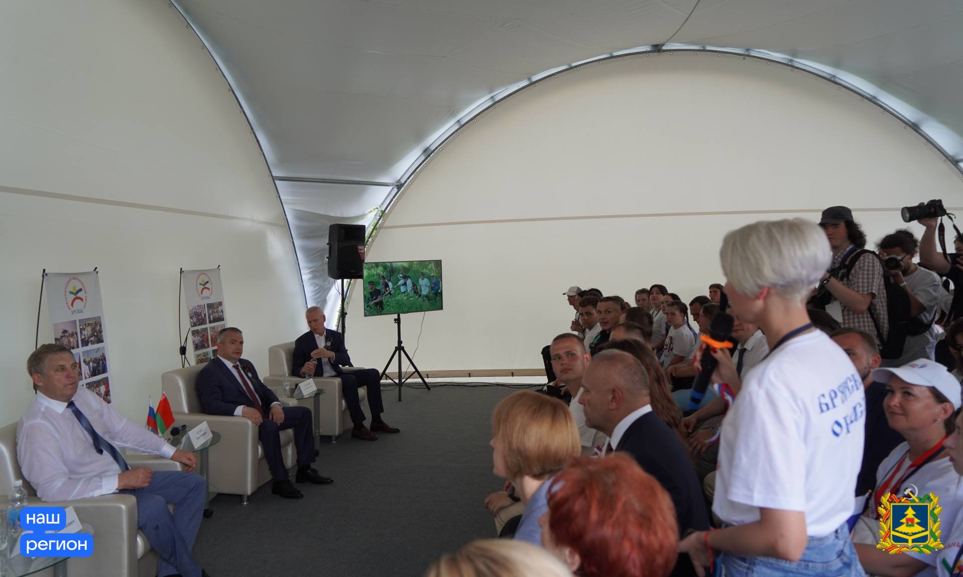 Вместе с председателем Гомельского облисполкома Иваном Крупко и советником Председателя Правительства РФ по спорту Олегом Матыциным Губернатор Александр Богомаз на диалоговой площадке «Живи в веках, славянская семья!» пообщался с участниками лагеря славянской молодежи «Дружба».