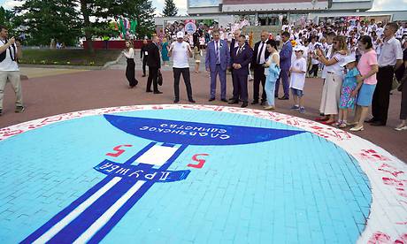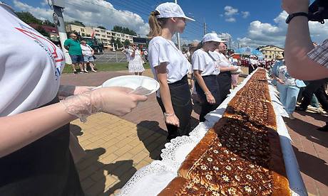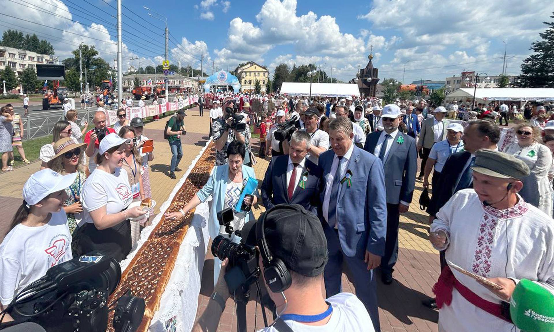 Хозяева праздника — семьи из Гомельской и Брянской областей — на Славянской площади под величальные песни лучших творческих коллективов встречали гостей многометровыми уникальными рушниками, вышитыми мастерицами Гомельской, Могилевской и Брянской земли, и двадцатиметровым славянским пирогом дружбы.