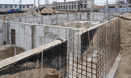 Готова чаша бассейна, строители приступают к бетонированию пола в спортзале, каменщики заканчивают со стенами и можно будет штукатурить.