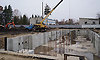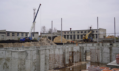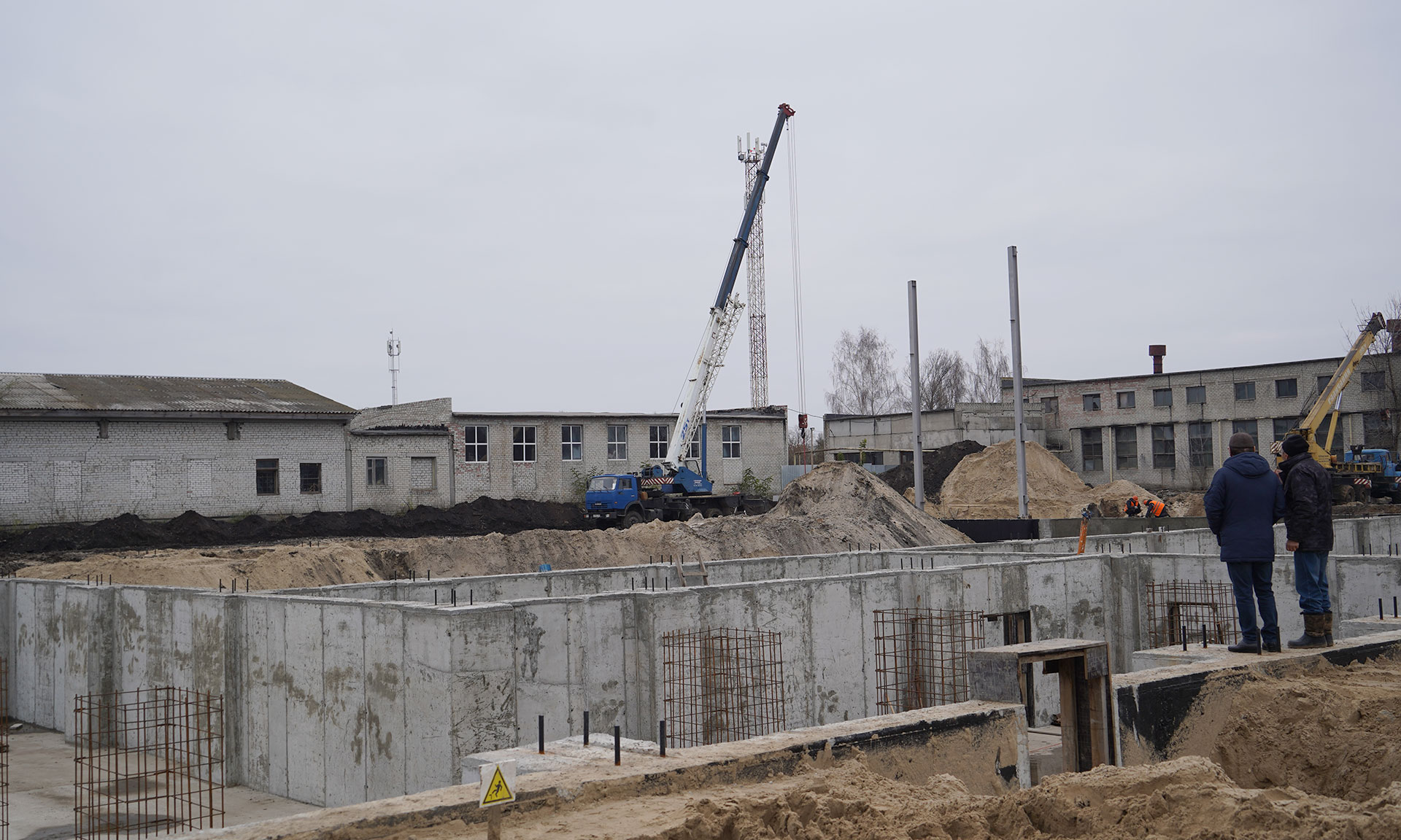 Завершены земляные работы по устройству котлована под фундамент, армированию стен подвала и колонн под монтаж несущих конструкций стен объекта, монтируются металлоконструкции производства Почепского завода.