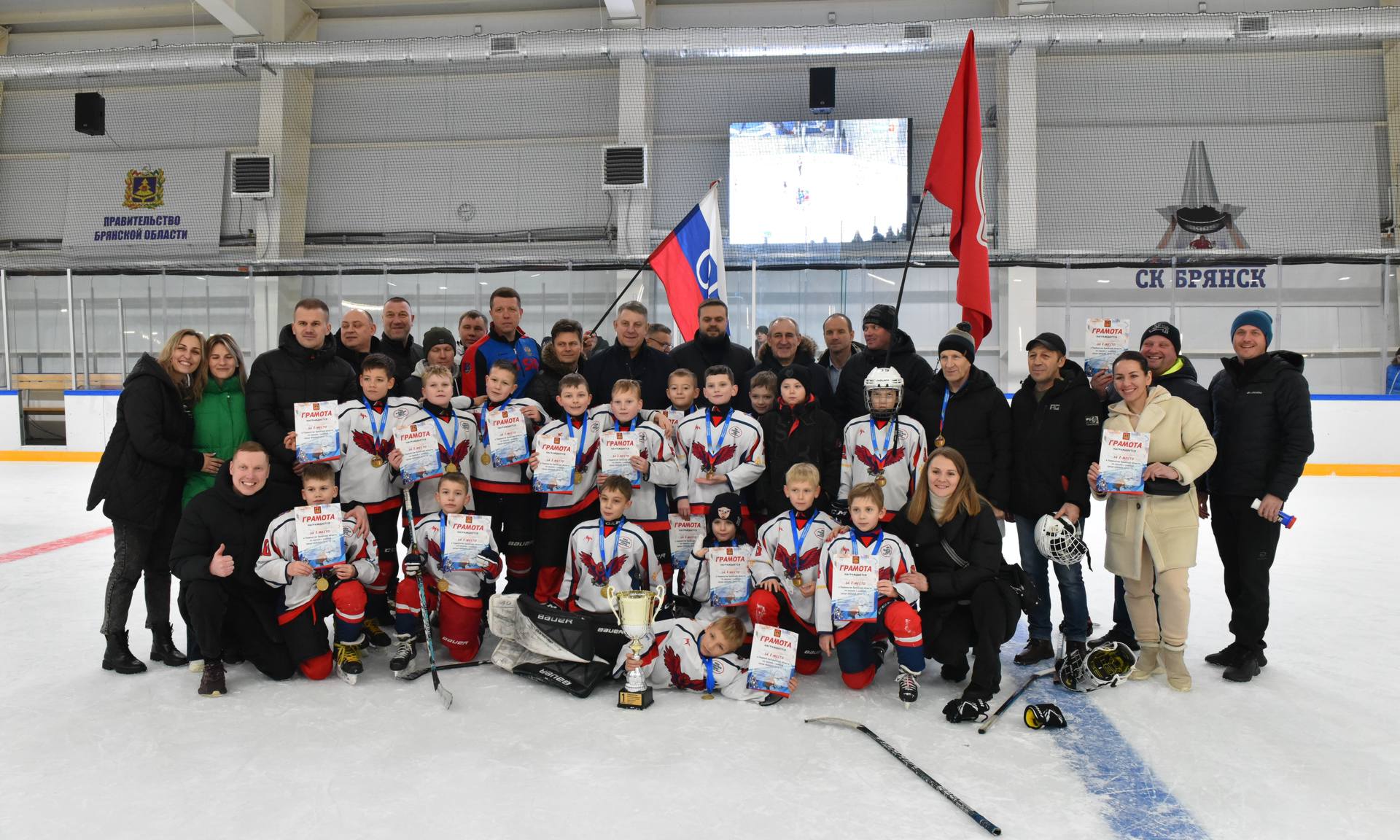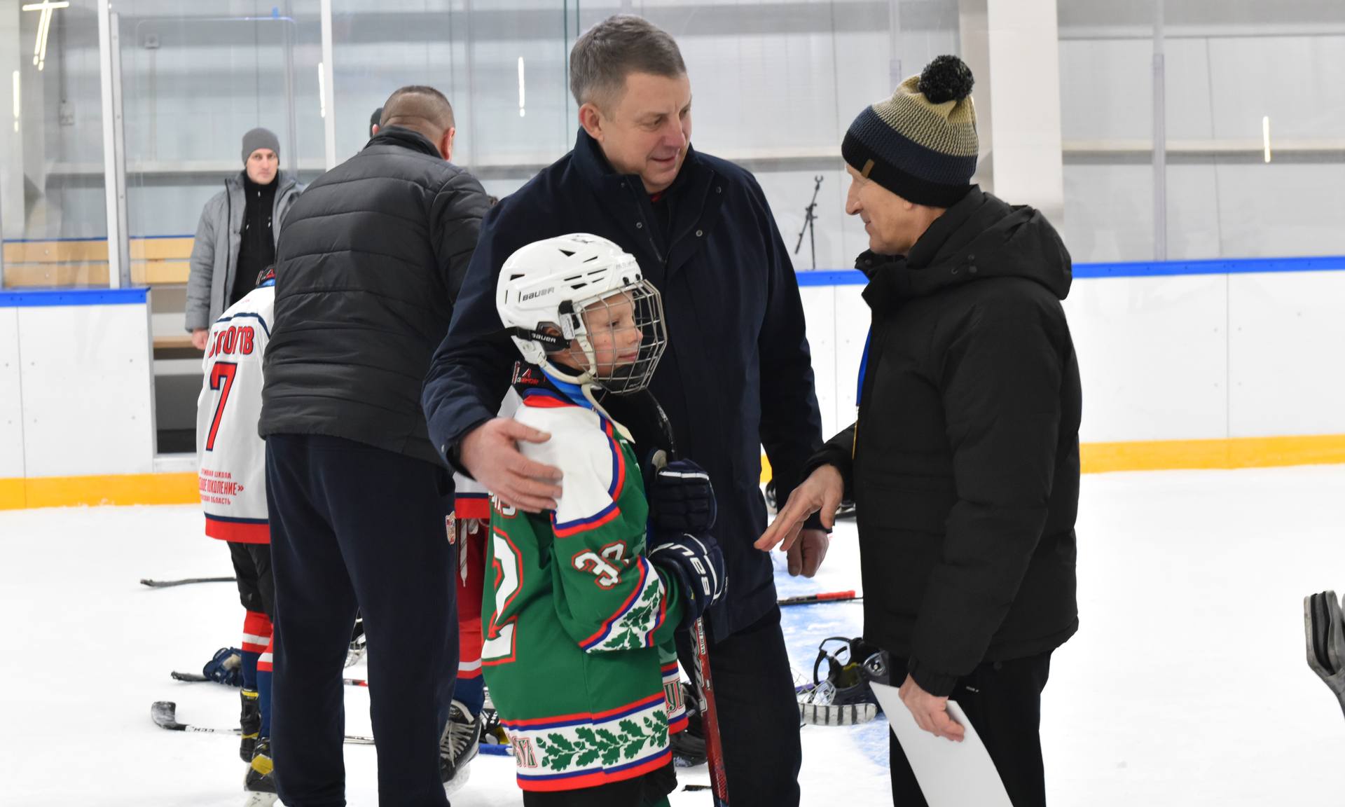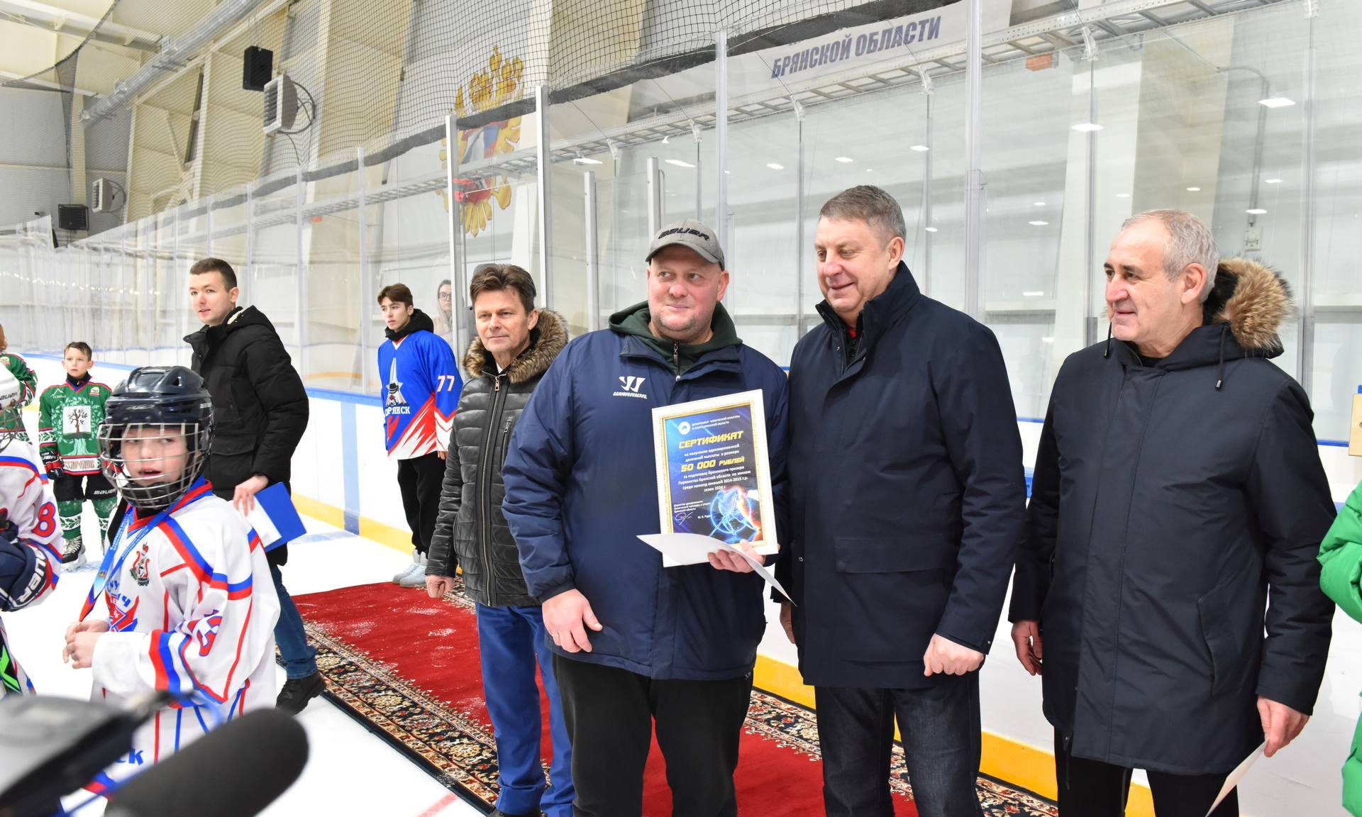 — Уважаемые почетные гости, дорогие ребята, уважаемые родители! Я хочу всех вас поздравить с этим замечательным праздником, который сегодня нам подарили дети. Сегодня мы подводим итоги Первенства Брянской области по хоккею среди юношей 2014–2015 годов рождения. В чемпионате области выступали команды нашей Брянской области, команды Смоленска, Калуги, Орла и Курска. В финал в этой возрастной группе вышли команды Смоленска, Орла, Брянска и команда Стародубского муниципального округа.