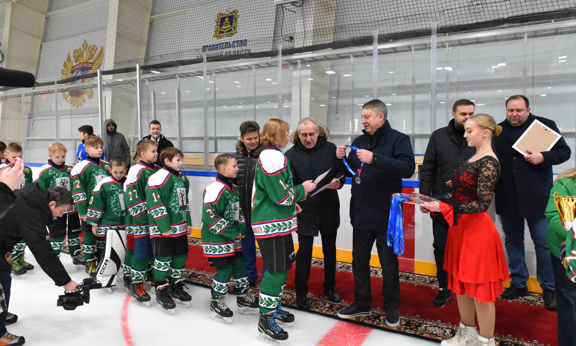 — Дорогие спортсмены, тренеры, уважаемые родители и все болельщики, что собрались сегодня на этой прекрасной ледовой арене!