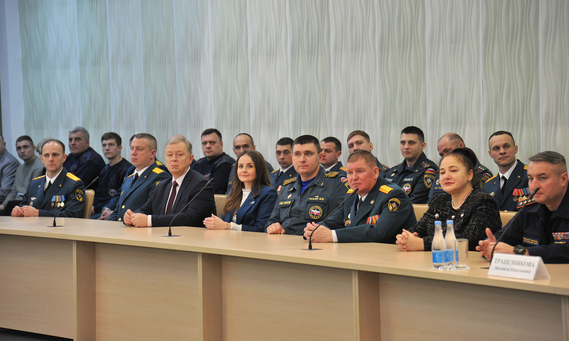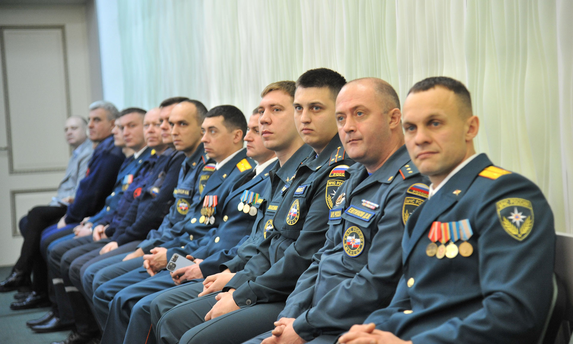 В этом зале собрались сегодня те, кто всегда находится «на передовой» обеспечения безопасности жизни наших граждан — там, где людям нужна помощь: в завалах разрушенных строений, в огне пожаров, на затопленных территориях.