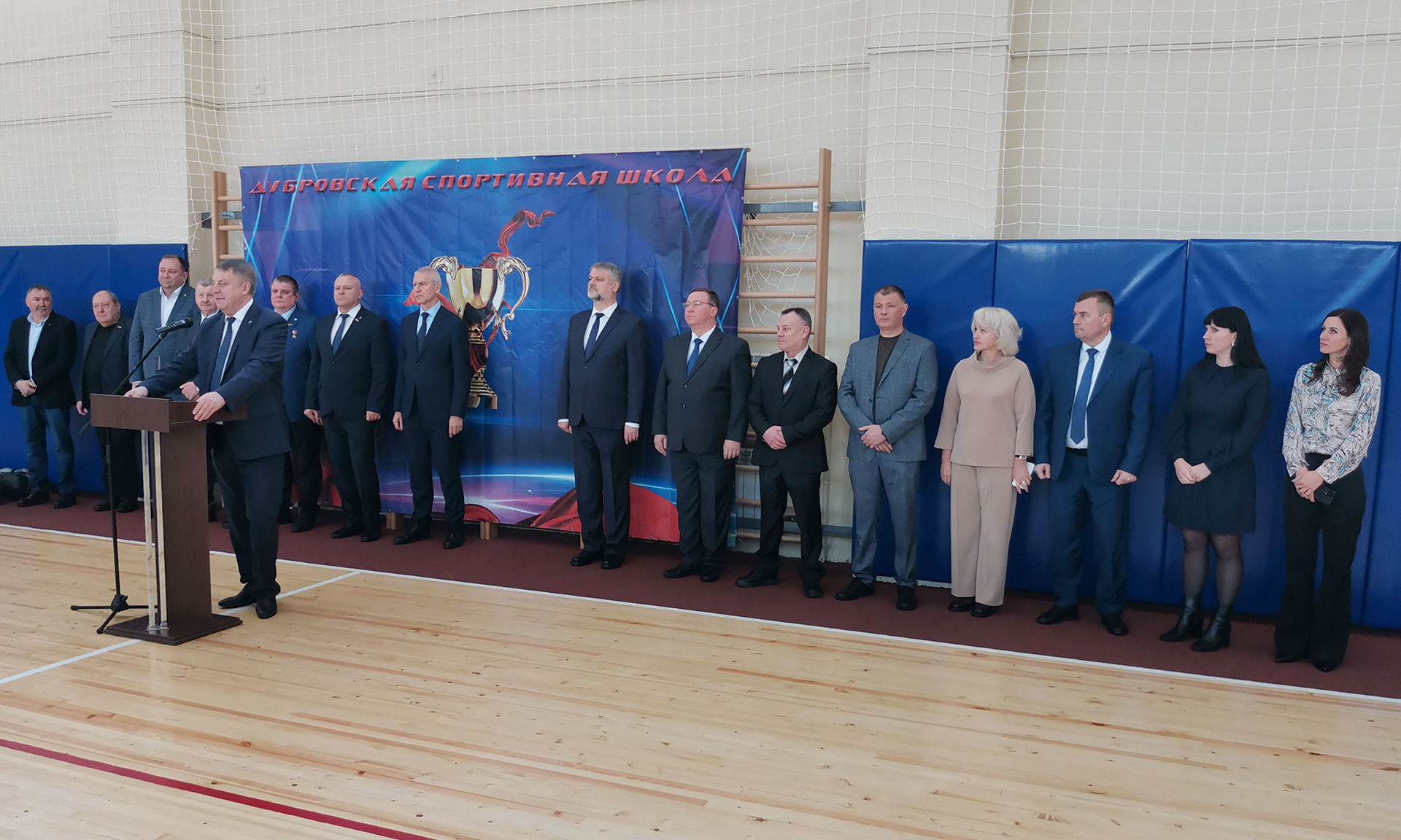 — Добрый день, дорогие ребята, уважаемые участники мероприятия. В преддверии Нового года и Рождества с председателем комитета Государственной Думы по физической культуре и спорту Олегом Васильевичем Матыциным открываем обновленный Дом спорта Дубровской спортивной школы. И будучи Министром спорта, и сейчас как депутат Государственной Думы от Брянской области Олег Васильевич Матыцин оказывает помощь и поддержку в развитии спорта в нашем регионе.