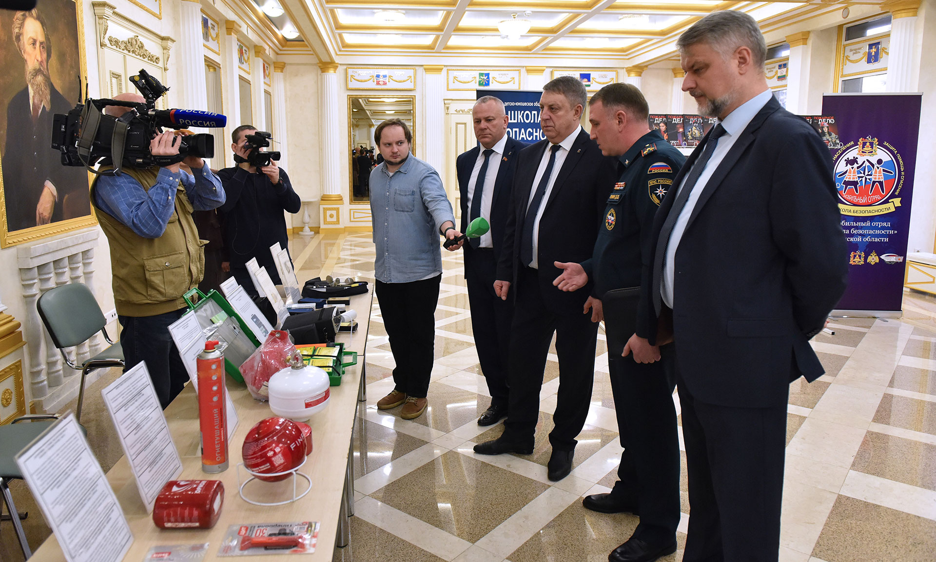 Перед подведением итогов деятельности территориальной подсистемы РСЧС Брянской области в фойе Хрустального зала была представлена выставка современных средств индивидуальной защиты, пожаротушения радиационного и химического мониторинга окружающей среды.