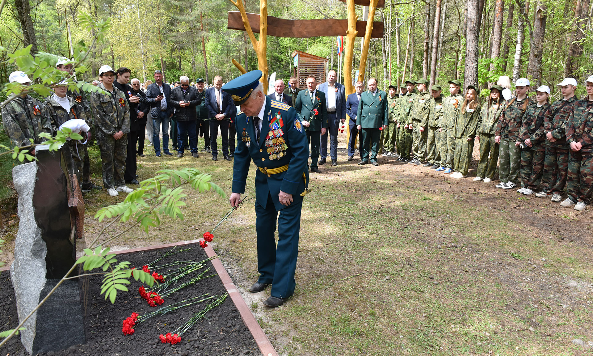 В преддверии празднования 80-й годовщины Победы в Великой Отечественной войне почетные гости открыли памятный знак «Лесникам-партизанам России и Беларуси, принимавшим участие в партизанском движении».