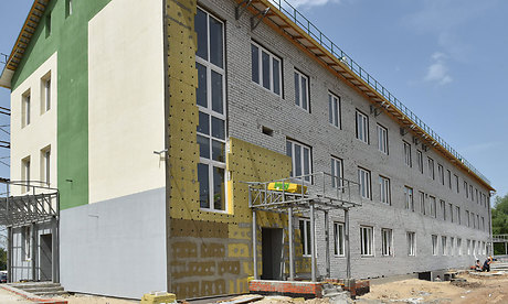 В здании общежития также практически готовы санузлы и душевые, работают плиточники, отделочники, приступили к фасаду здания и кровле, к следующей неделе она должна быть готова.