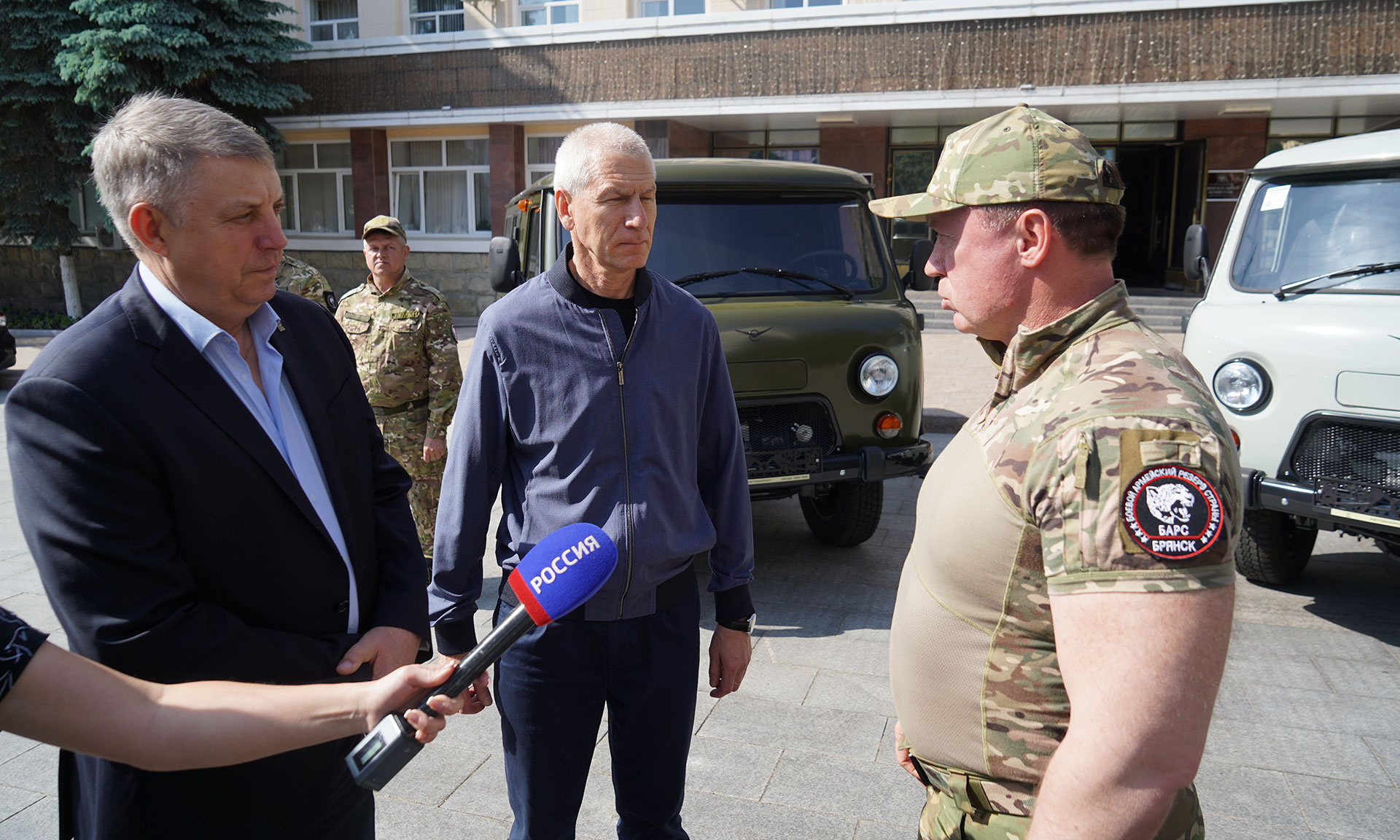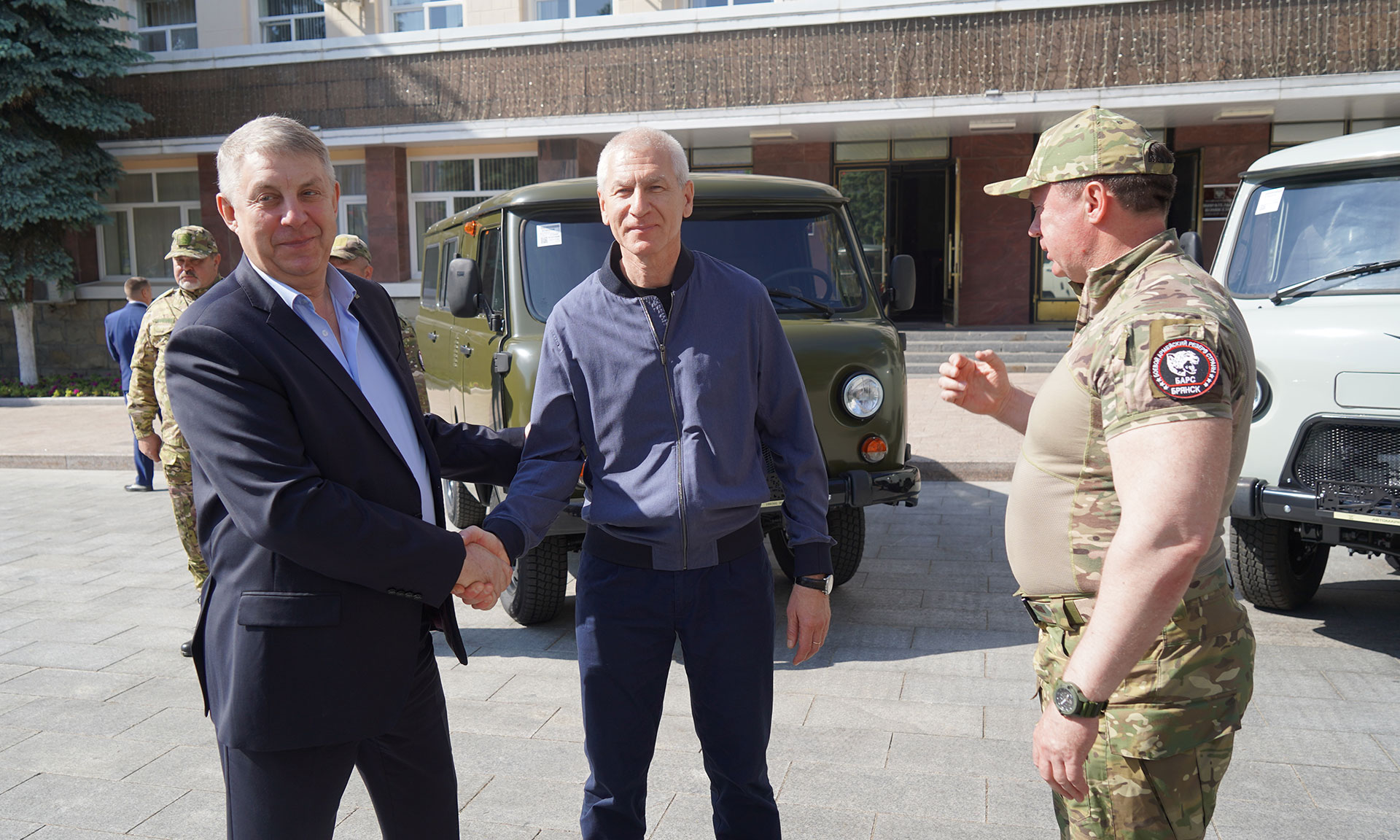 3 июня Губернатор Александр Богомаз и председатель Комитета Государственной Думы по физической культуре и спорту Олег Матыцин вручили добровольческой бригаде «БАРС-Брянск» ключи от автомобилей.