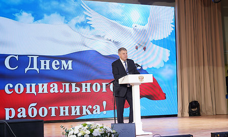 — Сегодня мы собрались в преддверии вашего профессионального праздника. В этом году у вас юбилей — 25 лет со дня выхода Указа Президента Российской Федерации о праздновании Дня социального работника. Но история службы насчитывает более трех веков, со времен Петра I, положившего начало государственной системе социальной защиты. За это время служба пережила немало реформ, но главным в вашей деятельности всегда оставалась забота о людях! Я поздравляю вас и ваших коллег и хочу сказать огромное спасибо за ваш благородный труд. Такие люди, как вы, пользуются высоким уважением всего общества. Ваша профессия требует особого душевного склада, умения сострадать, помочь тем, кто не может обходиться без посторонней помощи.