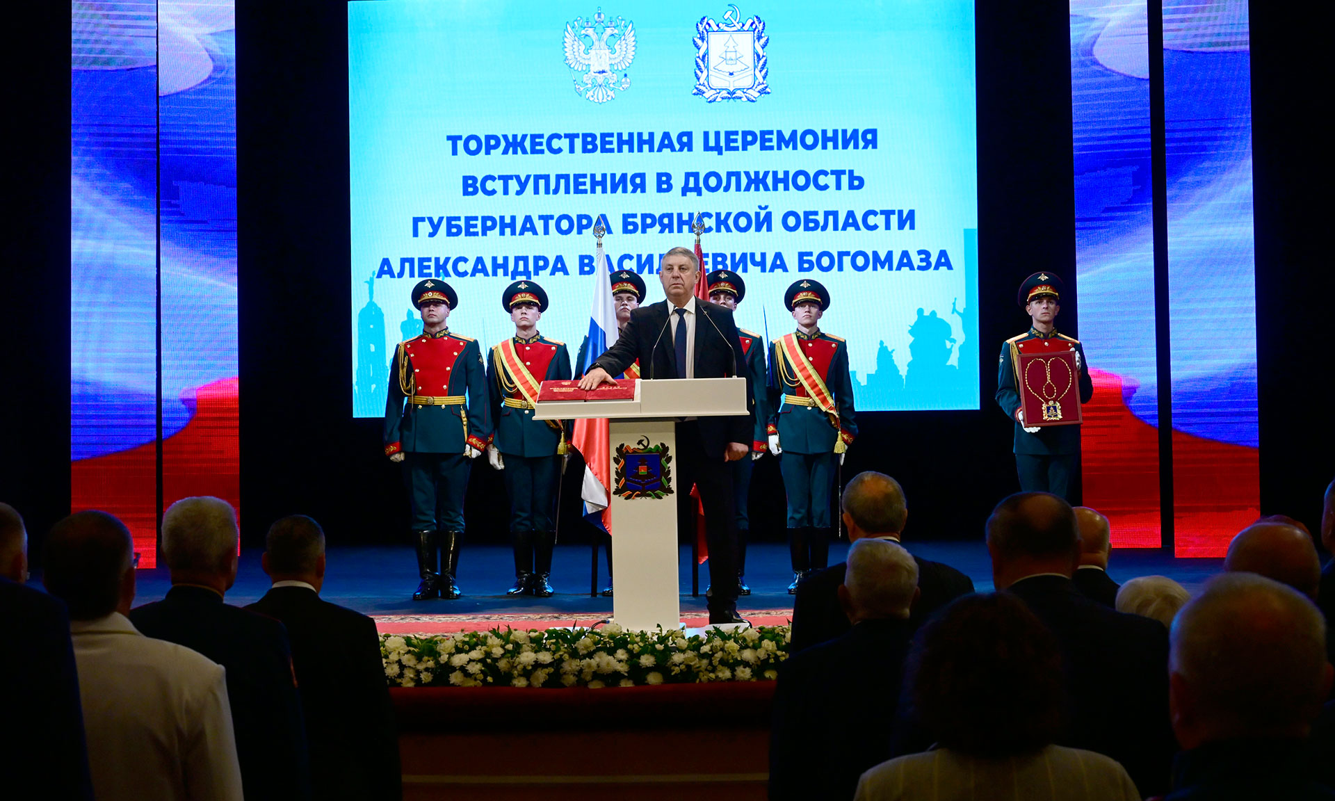 В соответствии с Конституцией Российской Федерации, Уставом Брянской области Губернатор Брянской области Александр Богомаз принес присягу: