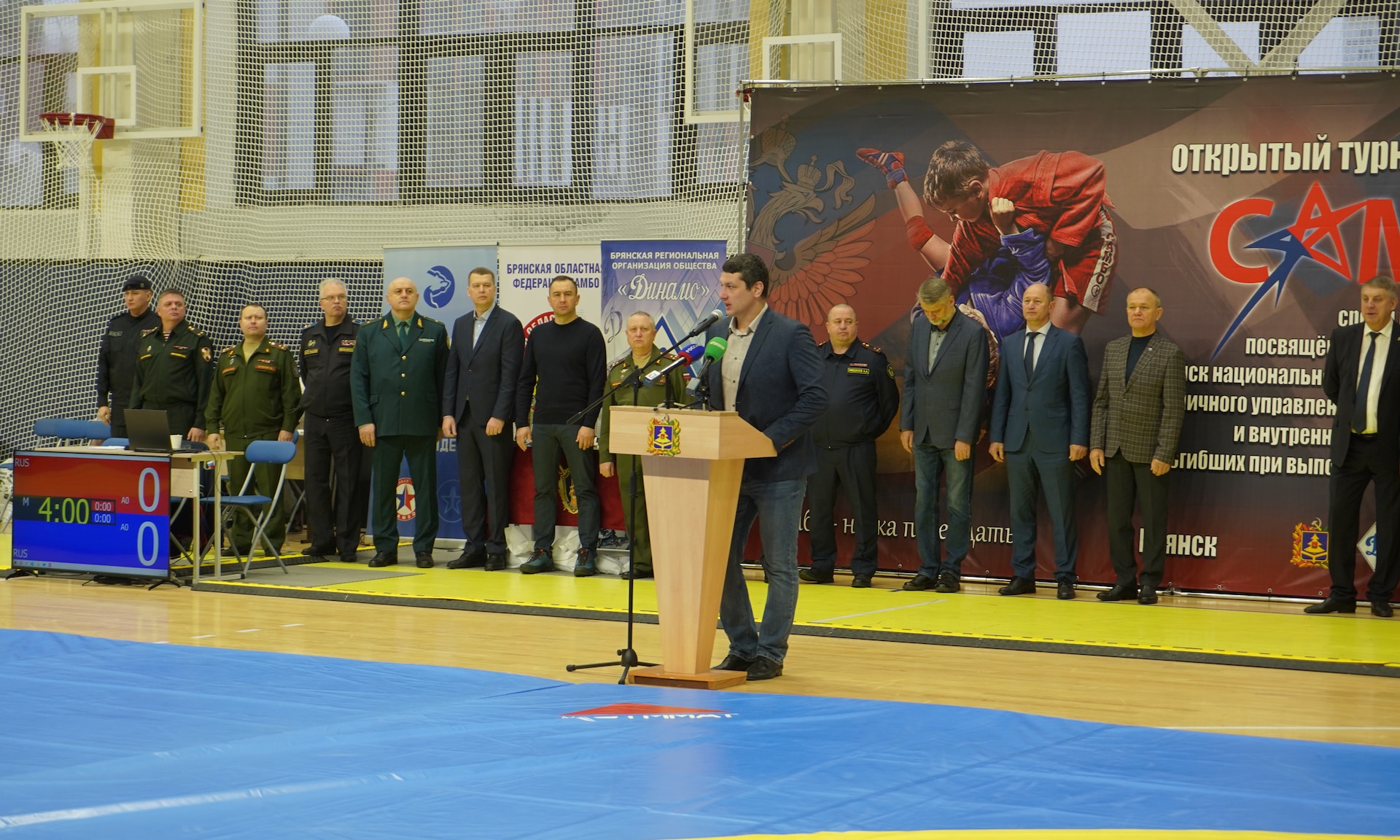В открытии соревнований приняли участие Губернатор Александр Богомаз, председатель Брянской областной Думы Валентин Суббот, главный федеральный инспектор по Брянской области Андрей Дьячук, мастер спорта СССР, заслуженный тренер РСФСР, судья международной категории по самбо экстра-класса, почётный гражданин города Брянска Отар Михайлович Кацанашвили, начальник Управления Росгвардии по Брянской области, генерал-майор полиции Иван Ванчугов, прокурор Брянской области Владимир Мосин, начальник управления ФСБ России по Брянской области, генерал-майор Сергей Воронин, руководитель следственного управления Следственного комитета Российской Федерации по Брянской области Алексей Кузьмичев, начальник Брянской таможни Сергей Санакоев, начальник УФСИН России по Брянской области Алексей Мишанов, одиннадцатикратный чемпион России, трехкратный чемпион Европы, десятикратный чемпион Мира, дважды обладатель кубка Мира, заслуженный мастер спорта России, почетный гражданин Брянска Артем Осипенко, депутат Государственной Думы Николай Щеглов, президент региональной физкультурно-спортивной общественной организации «Брянская областная федерация самбо» Алексей Рассыльщиков, руководители силовых структур Брянской области, заместители Губернатора Брянской области, руководители города Брянска, представители Брянской епархии, ветераны и личный состав Управления Федеральной службы войск национальной гвардии по Брянской области и органов внутренних дел, члены семей (родители) погибших военнослужащих и сотрудников органов правопорядка.