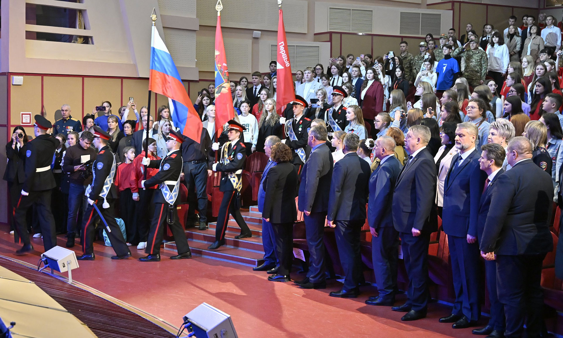 Почетное право внести Государственный Флаг Российской Федерации, Флаги Брянской области и Движения Первых было предоставлено знаменной группе Стародубского казачьего кадетского корпуса имени Героя Советского Союза Александра Ивановича Тарасенко, победителю Всероссийского смотра-конкурса на звание «Лучший казачий кадетский корпус» в 2025 году.