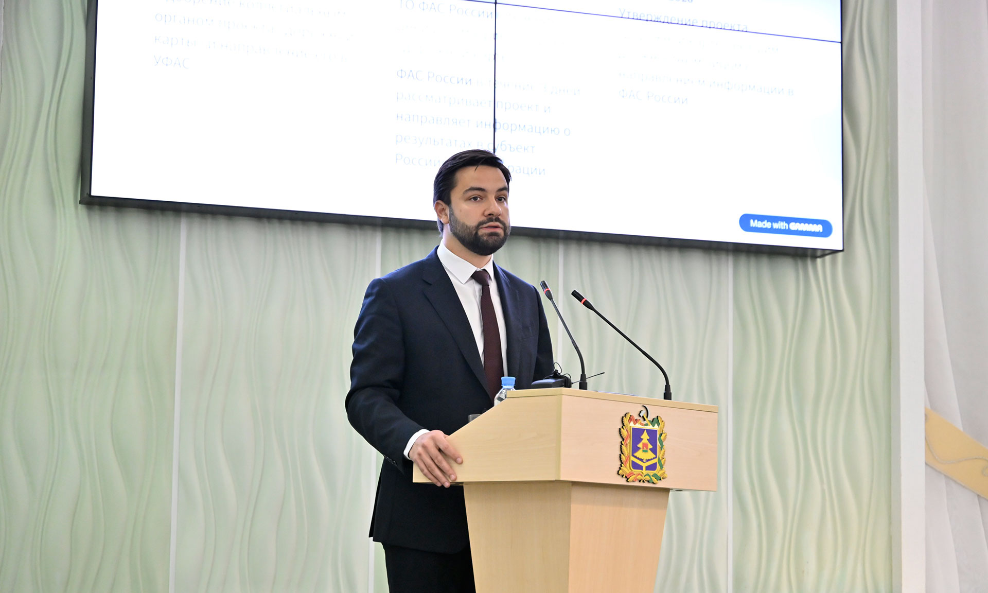 От имени Губернатора Брянской области Александра Васильевича Богомаза приветствую вас на героической Брянской земле! Взаимодействие Правительства Брянской области с Федеральной антимонопольной службой России носит системный характер и направлено на соблюдение антимонопольного законодательства.