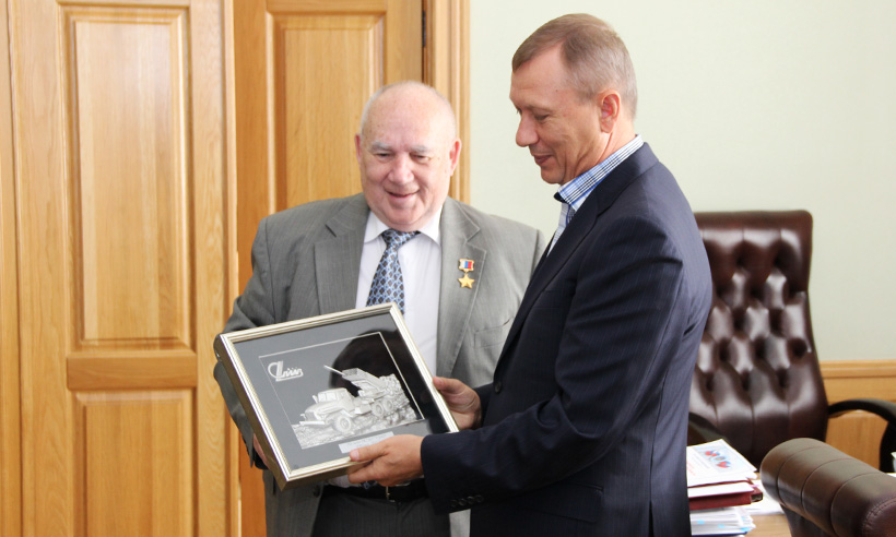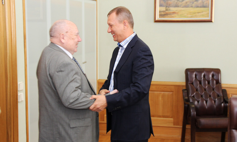 Сегодня Губернатор Николай Денин встретился с генеральным директором и генеральным конструктором НПО «Сплав», Героем Российской Федерации, лауреатом Ленинской и Государственной премий, академиком РА РАН, доктором технических наук, профессором Николаем Макаровцем и его заместителем, председателем Совета директоров ОАО «Брянский химический завод» Игорем Трофимовым.