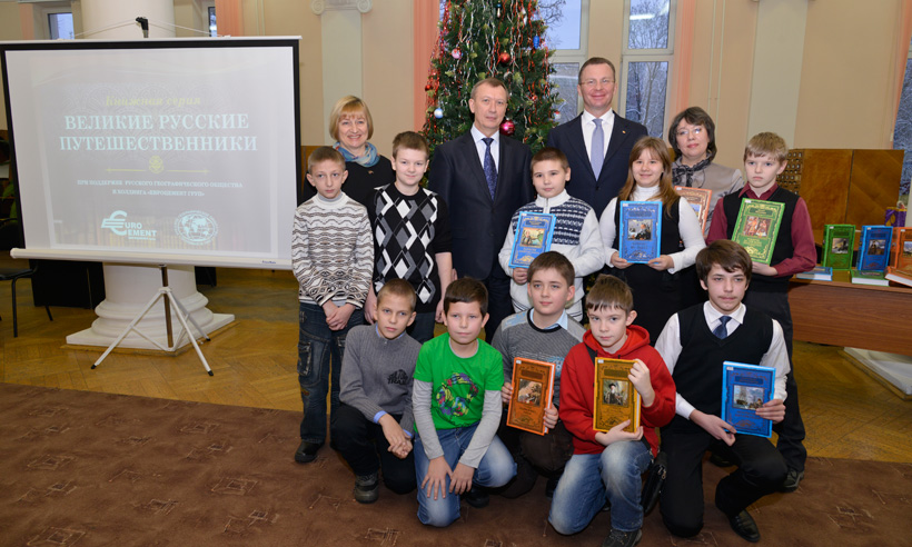 Сегодня в Брянской областной научной универсальной библиотеке им. Ф. И. Тютчева президент холдинга «ЕВРОЦЕМЕНТ груп» Михаил Скороход передал Губернатору Николаю Денину 40 комплектов книг уникальной серии «Великие русские путешественники», предназначенных для детских библиотек региона.