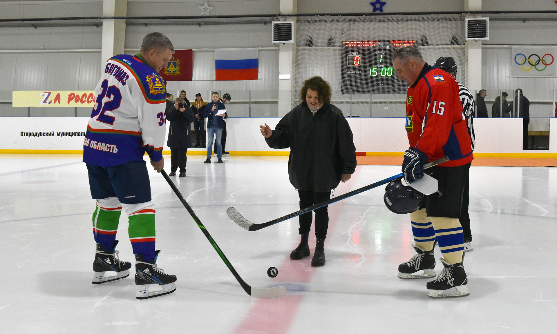 Символичное вбрасывание шайбы — сигнал к началу матча осуществила глава города Брянска Марина Дбар.