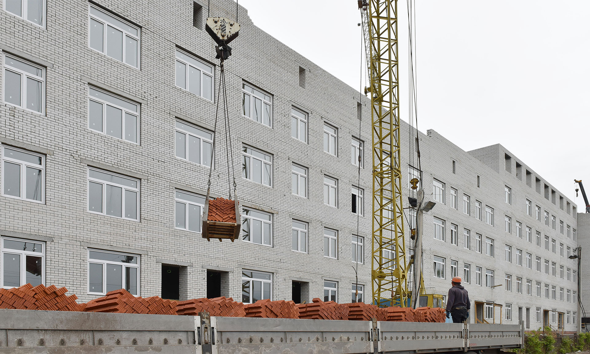 Еще один важный для города объект — поликлиника в старом аэропорту. Здесь приступили к кровле, установке оконных блоков, перегородок в здании и вентилируемого фасада, начаты электромонтажные работы. Для обоих будущих медицинских учреждений ведется закупка самого современного оборудования.