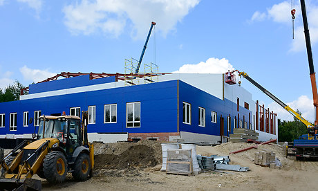 Сейчас смонтированы металлические колонны, отштукатурены перегородки в административной части, смонтирована котельная.