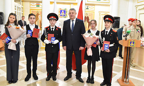 — От имени председателя Брянской областной Думы Валентина Владимировича Суббота, депутатского корпуса, от себя лично хочу поздравить вас, юные жители Брянщины, с очень важным событием — получением первого в жизни документа. Получив документ, который делает вас настоящими гражданами Российской Федерации, вы приобретаете новые возможности. Я не сомневаюсь, что вы, став полноправными россиянами, будете любить свою Родину, защищать ее от врагов, чтить традиции и культуру, соблюдать законы, соответствовать высокому статусу гражданина России.