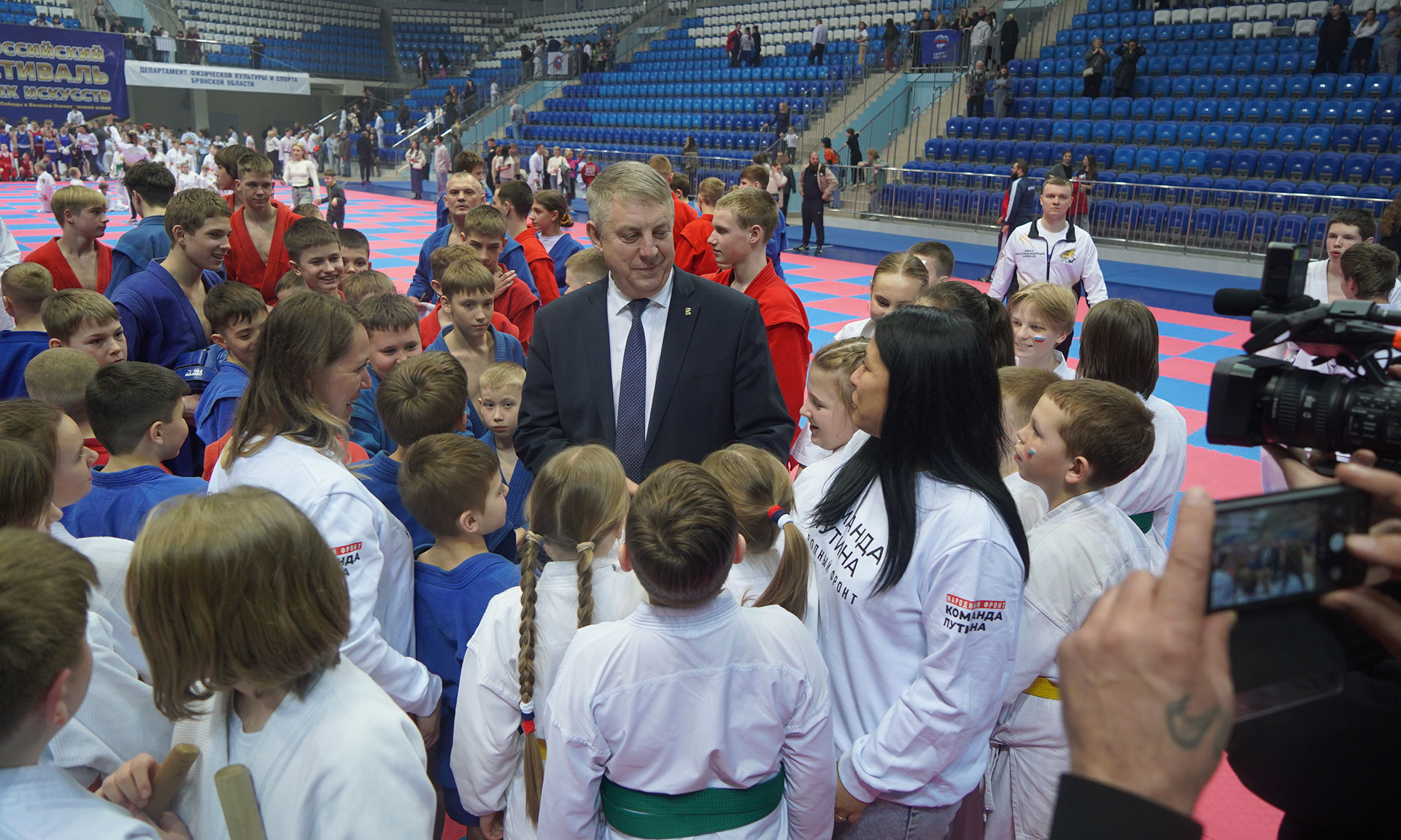Символично, что сегодня, в этот памятный и важный для всех нас день, в Брянске проводится фестиваль боевых искусств. Я рад приветствовать спортсменов федераций, входящих в состав Российского союза боевых искусств и, конечно же, наших братьев, участников из Республики Беларусь! Спорт, как и многое другое, объединяет наши братские народы. Вместе мы — сила!